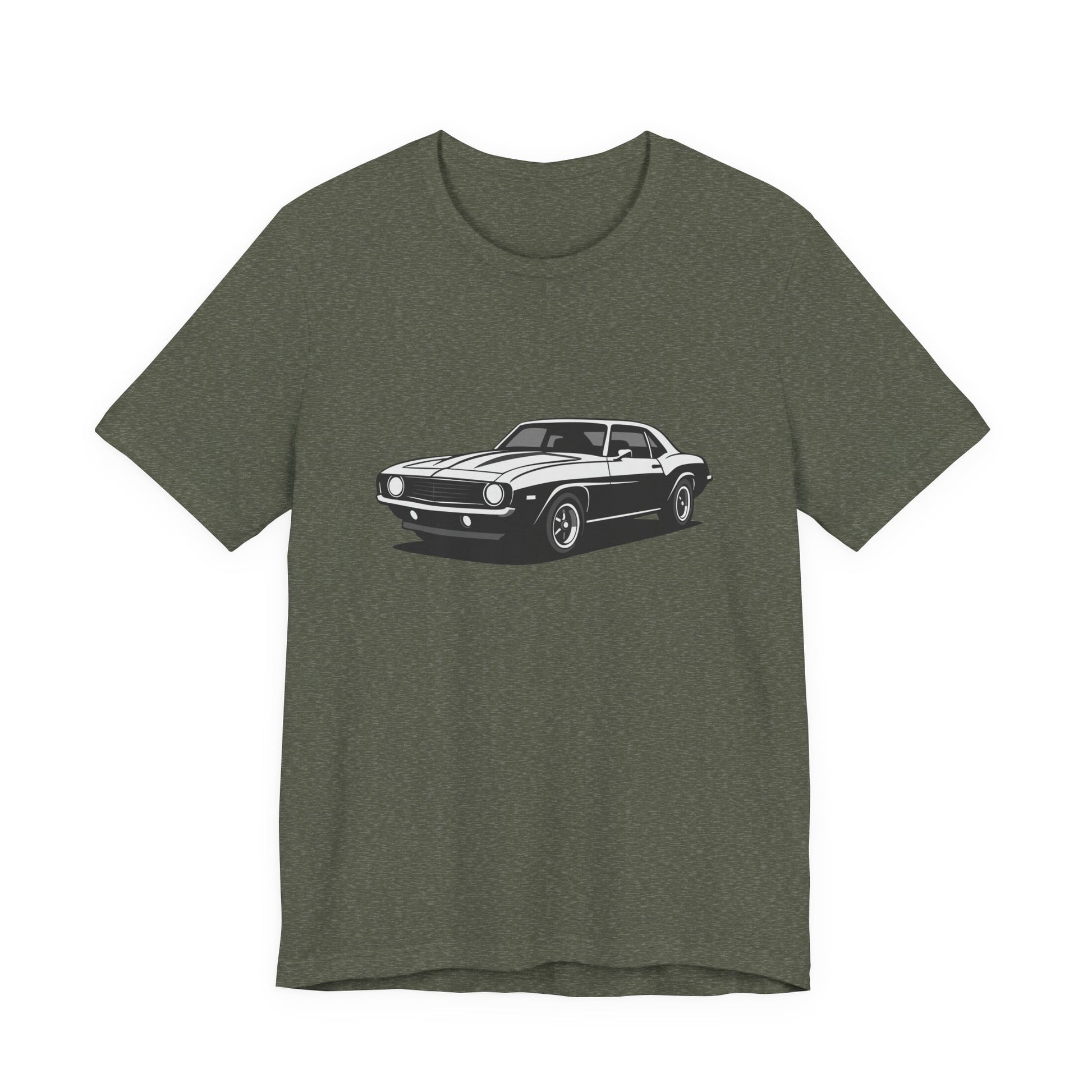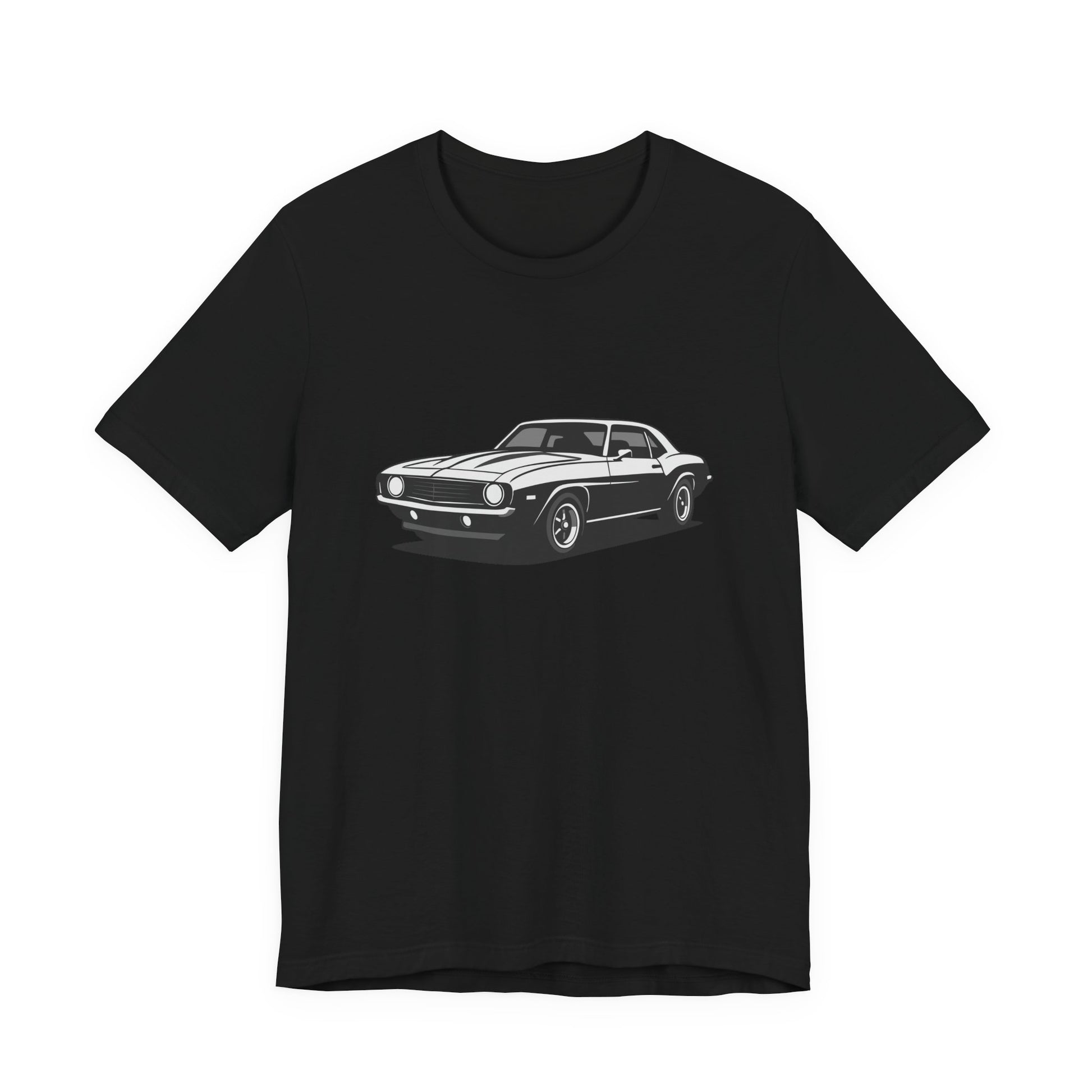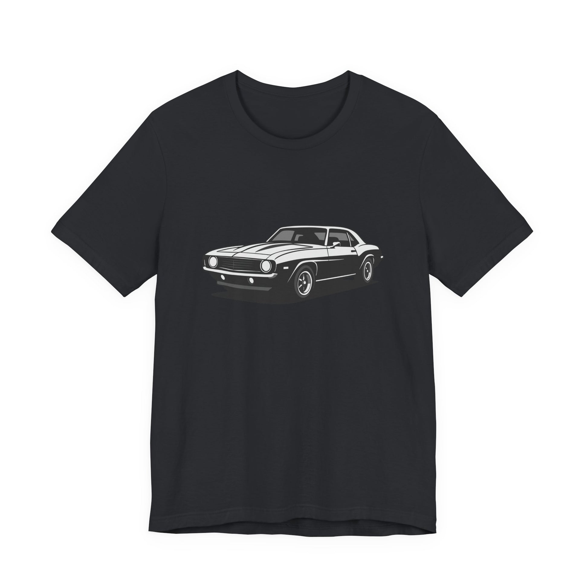 Classic Muscle Car Graphic Tee Dark Theme – Retro Camaro Vector Design for Auto Enthusiasts