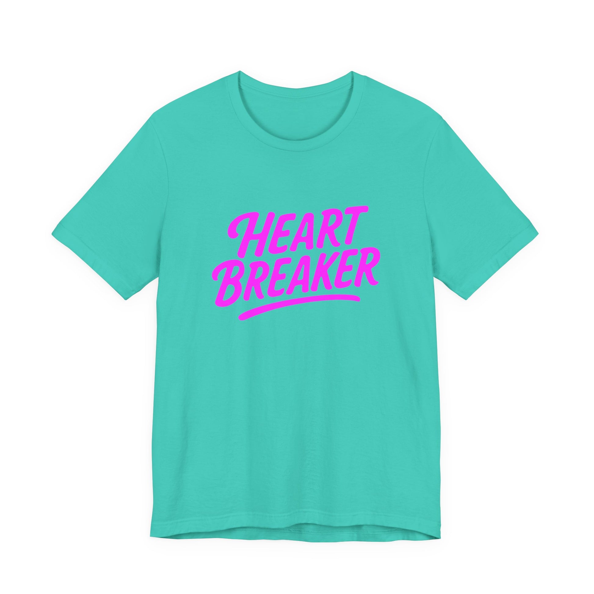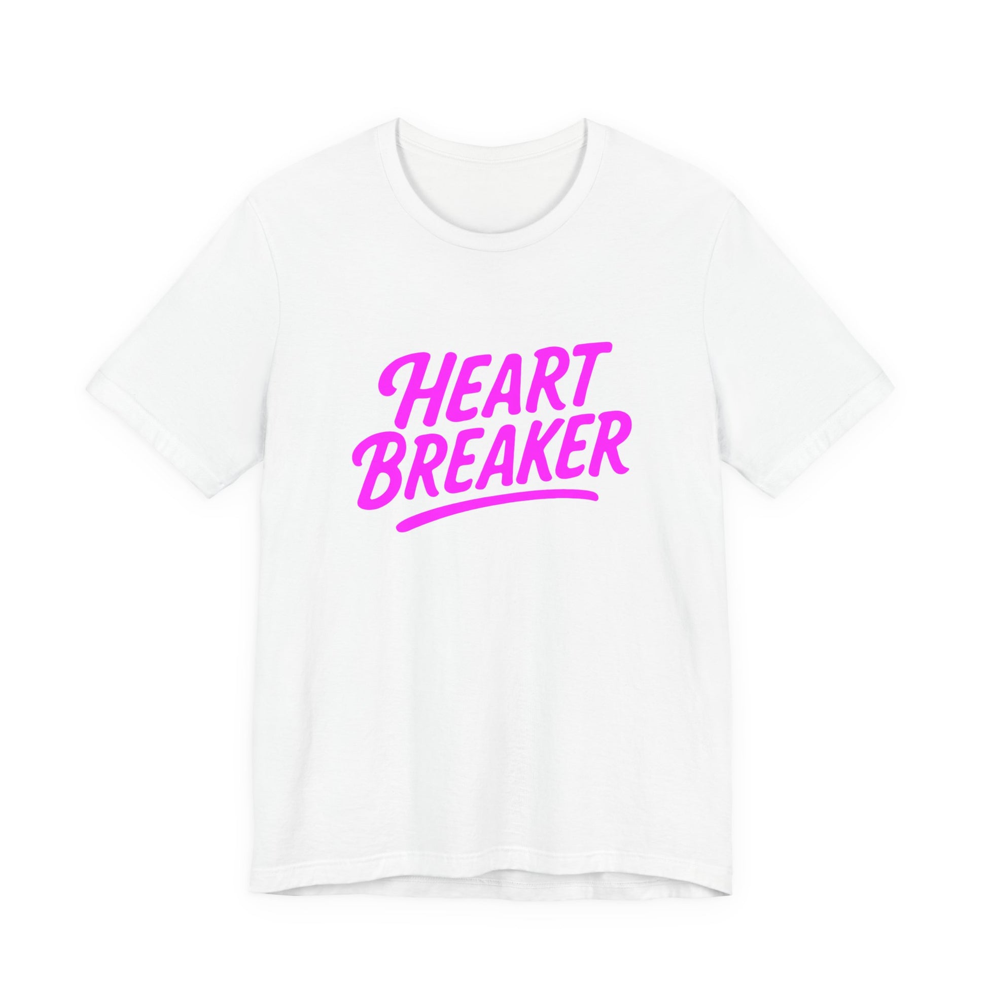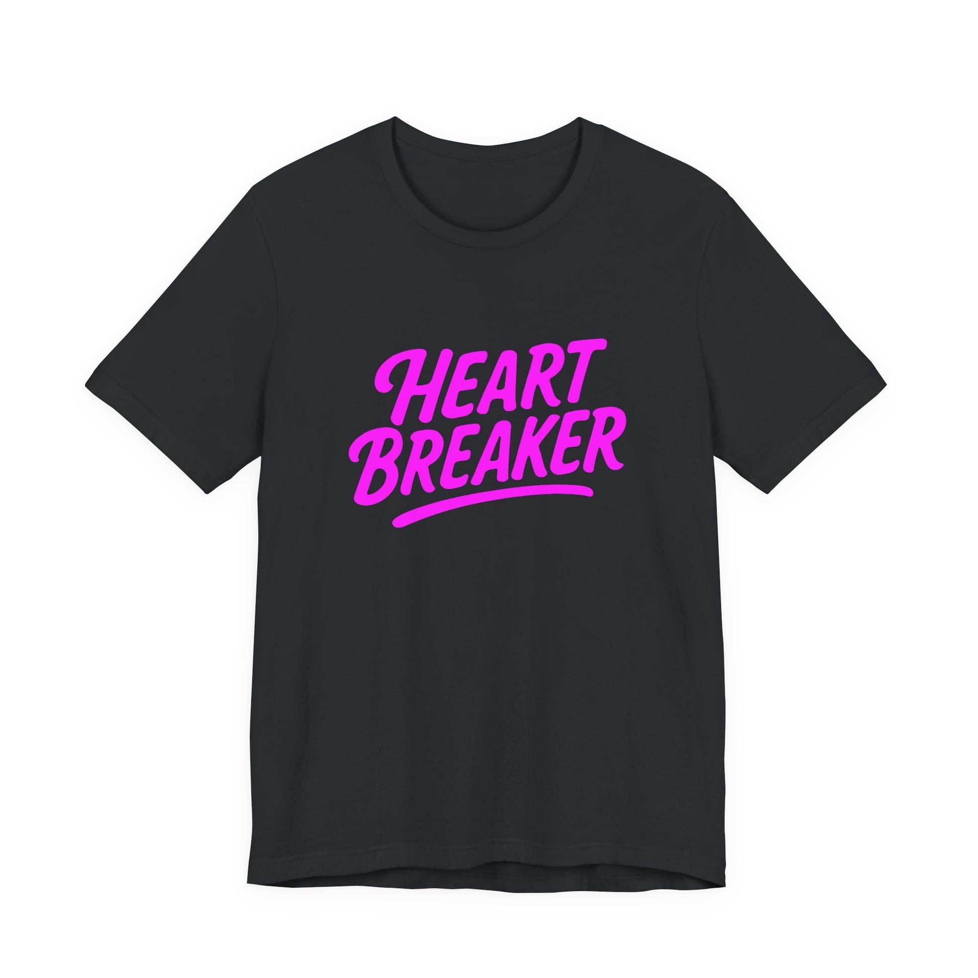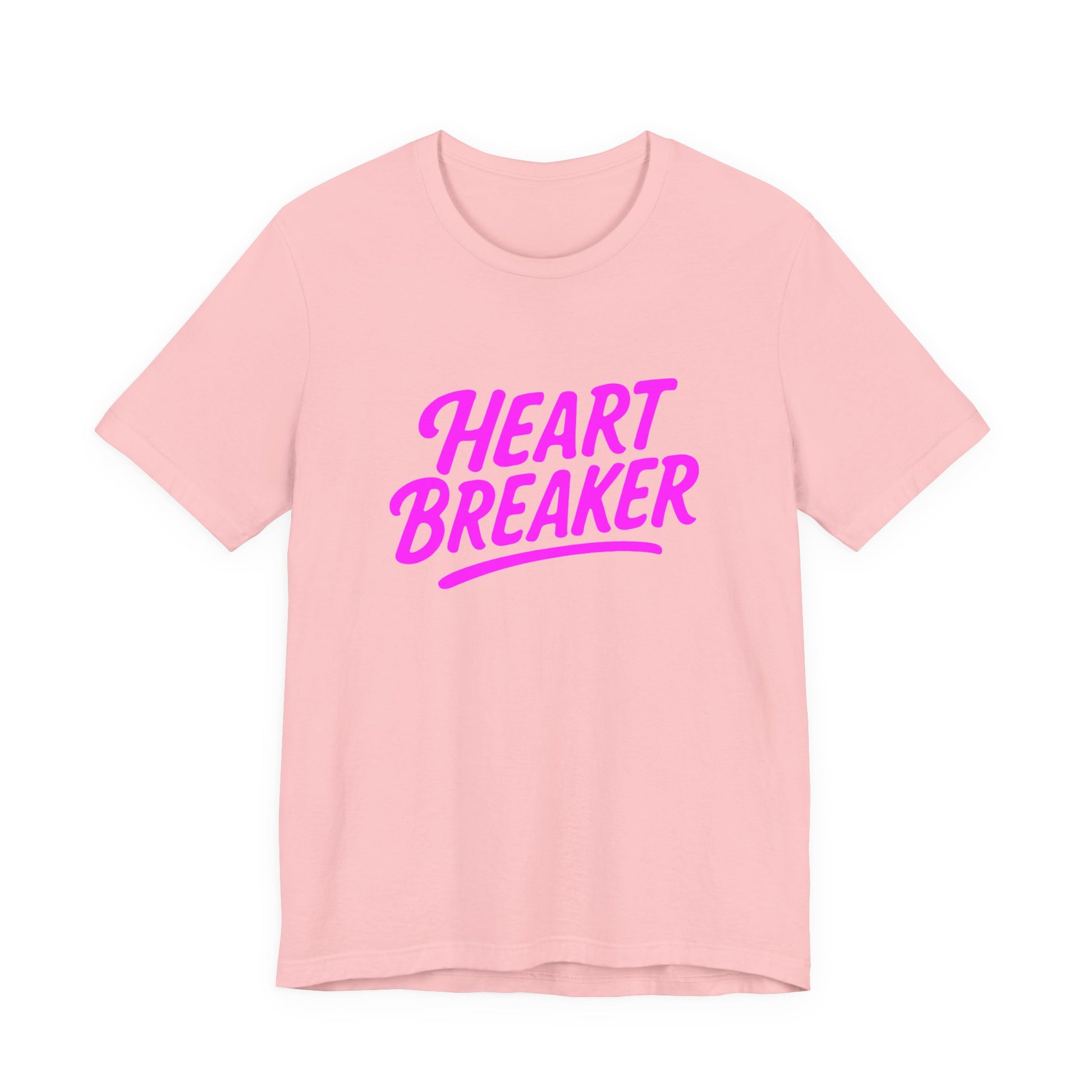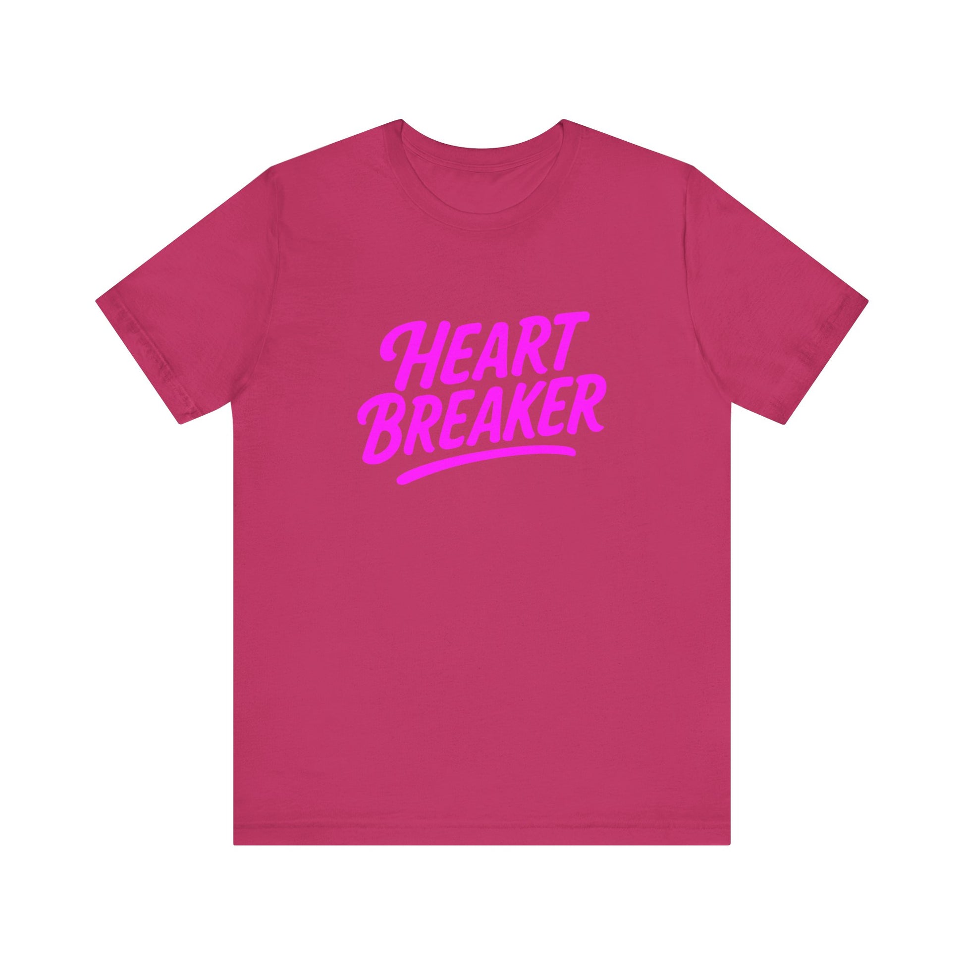 Colorful Design Heartbreaker Shirt – Neon Pink Retro Script Tee for Bold Women with Savage Energy. Unisex Jersey Short Sleeve Tee