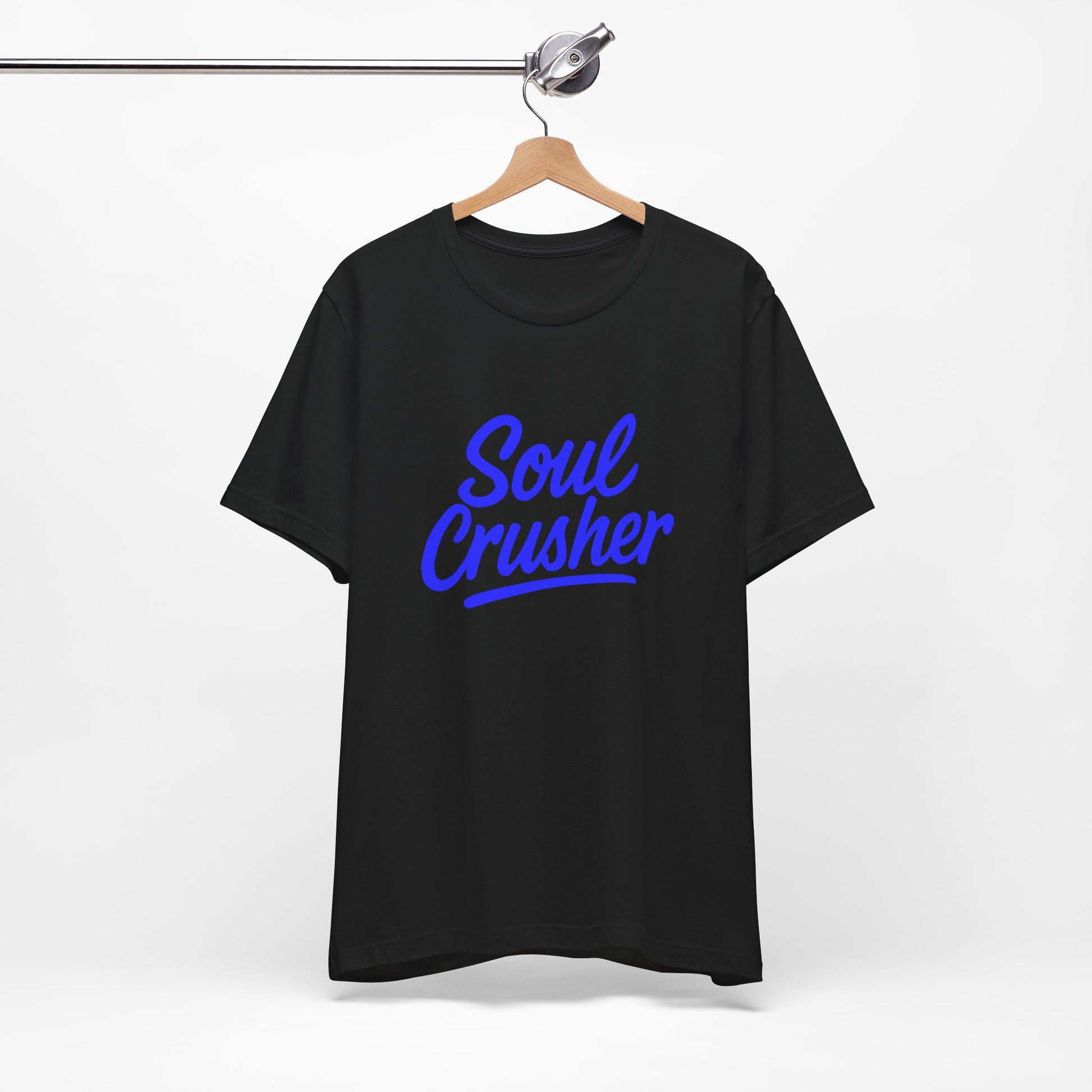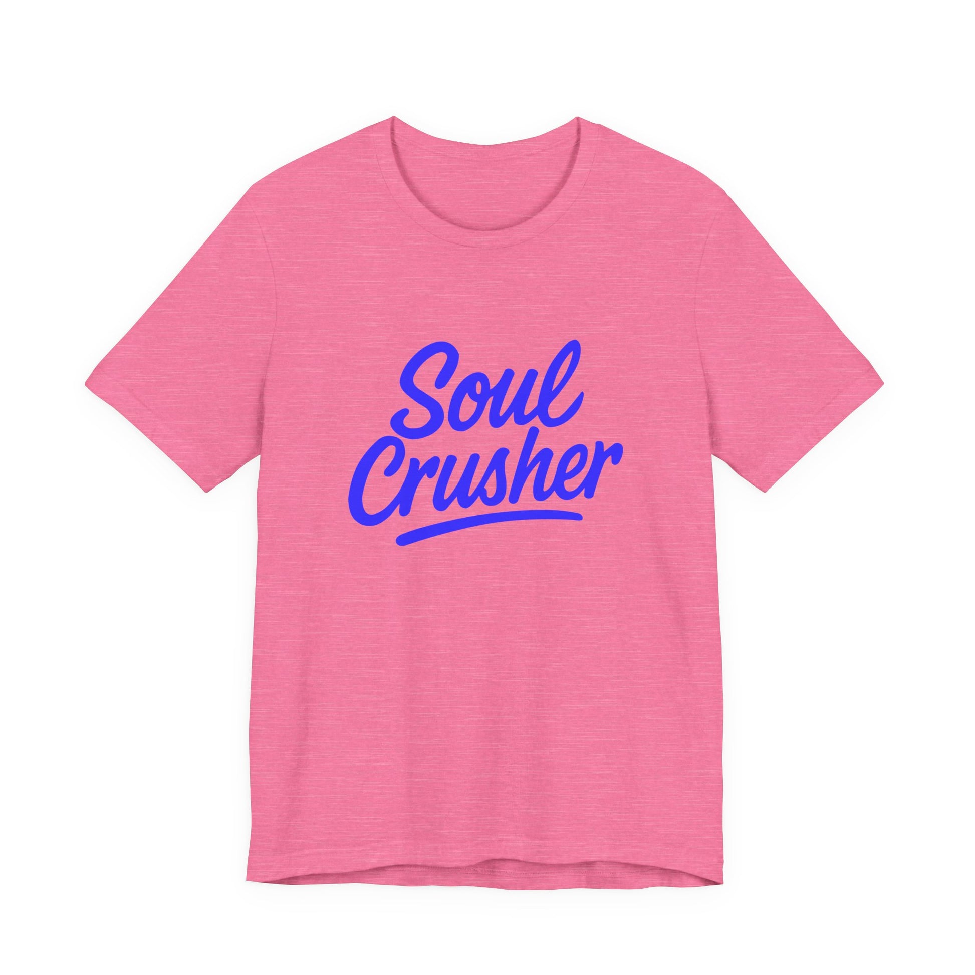 Colorful Design Soul Crusher Shirt – Blue Retro Script Tee for Women Who Leave a Trail of Broken Feelings. Unisex Jersey Short Sleeve Tee