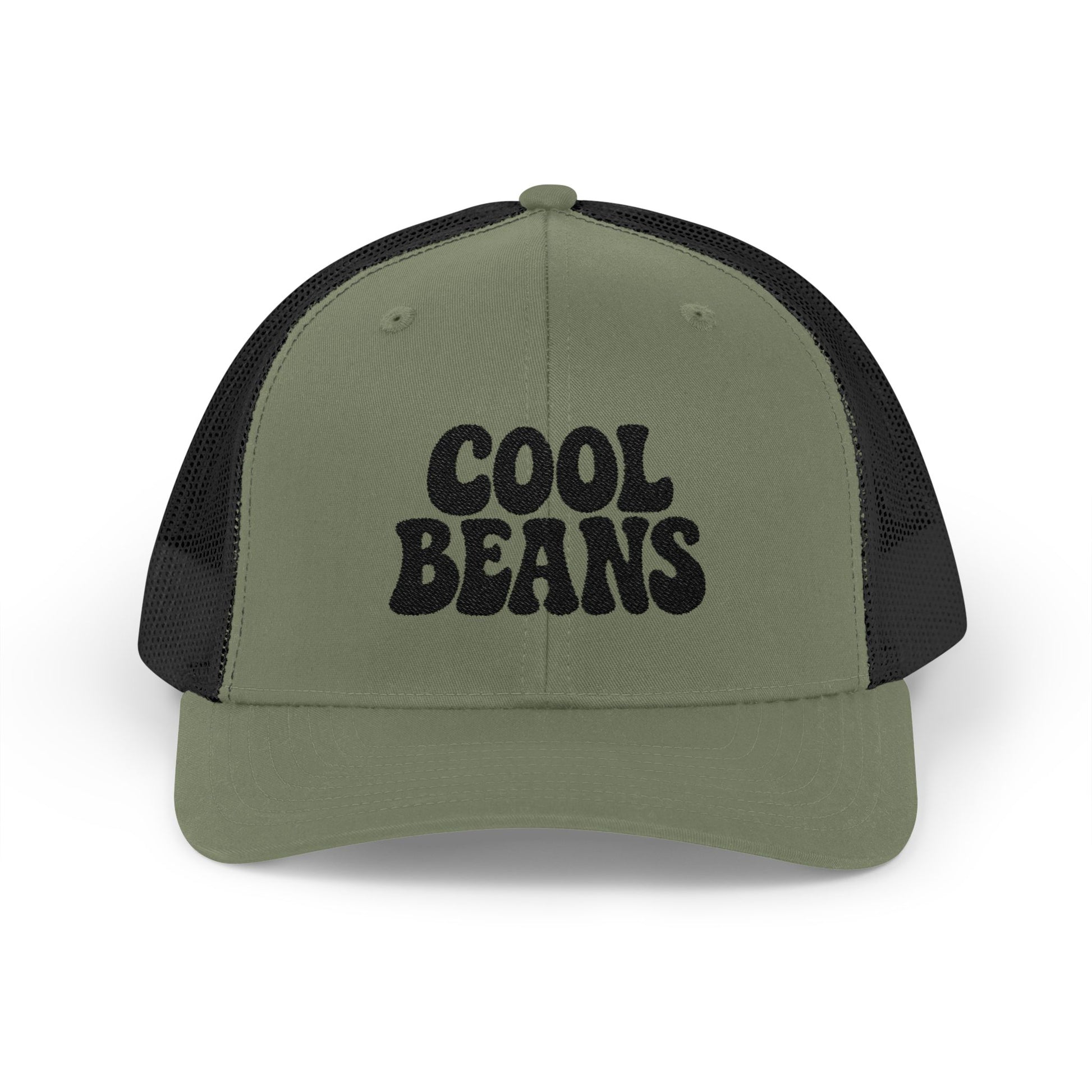 Cool Beans Trucker Hat – Embroidered Funny Minimalist Hat for Dry Humor and Casual Vibes. Black Letters