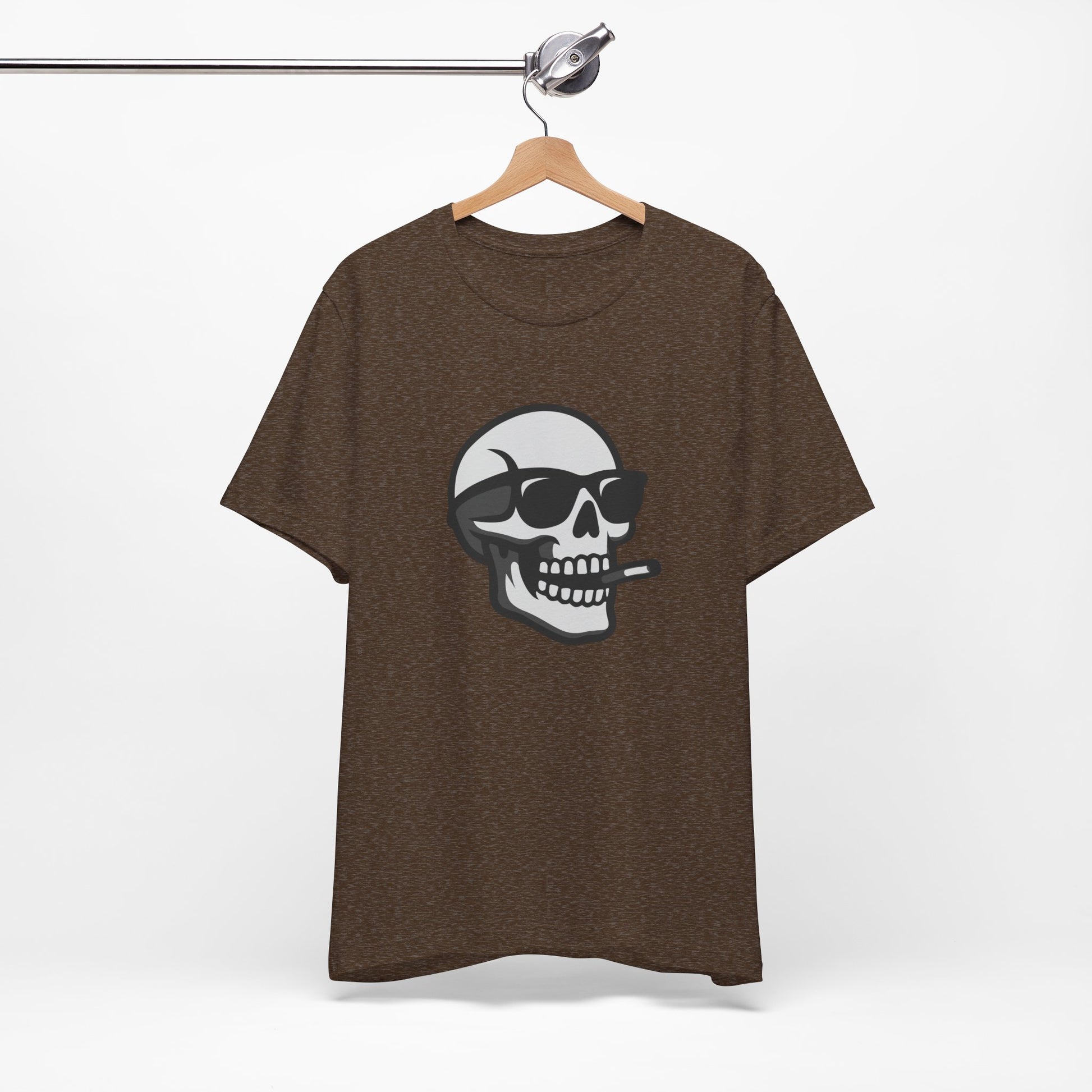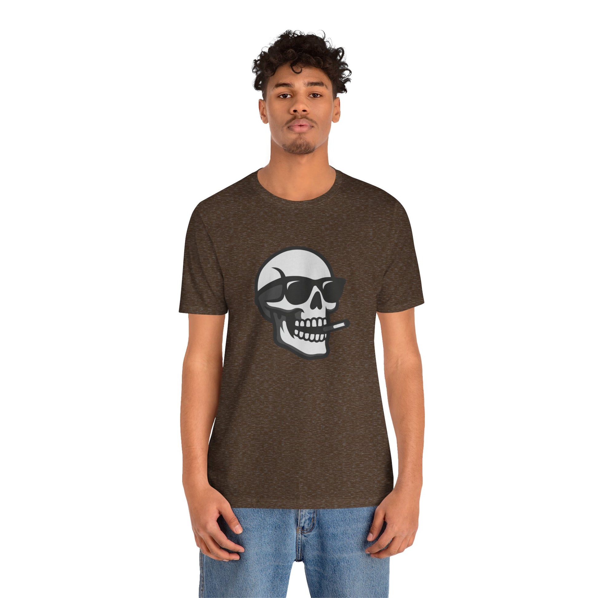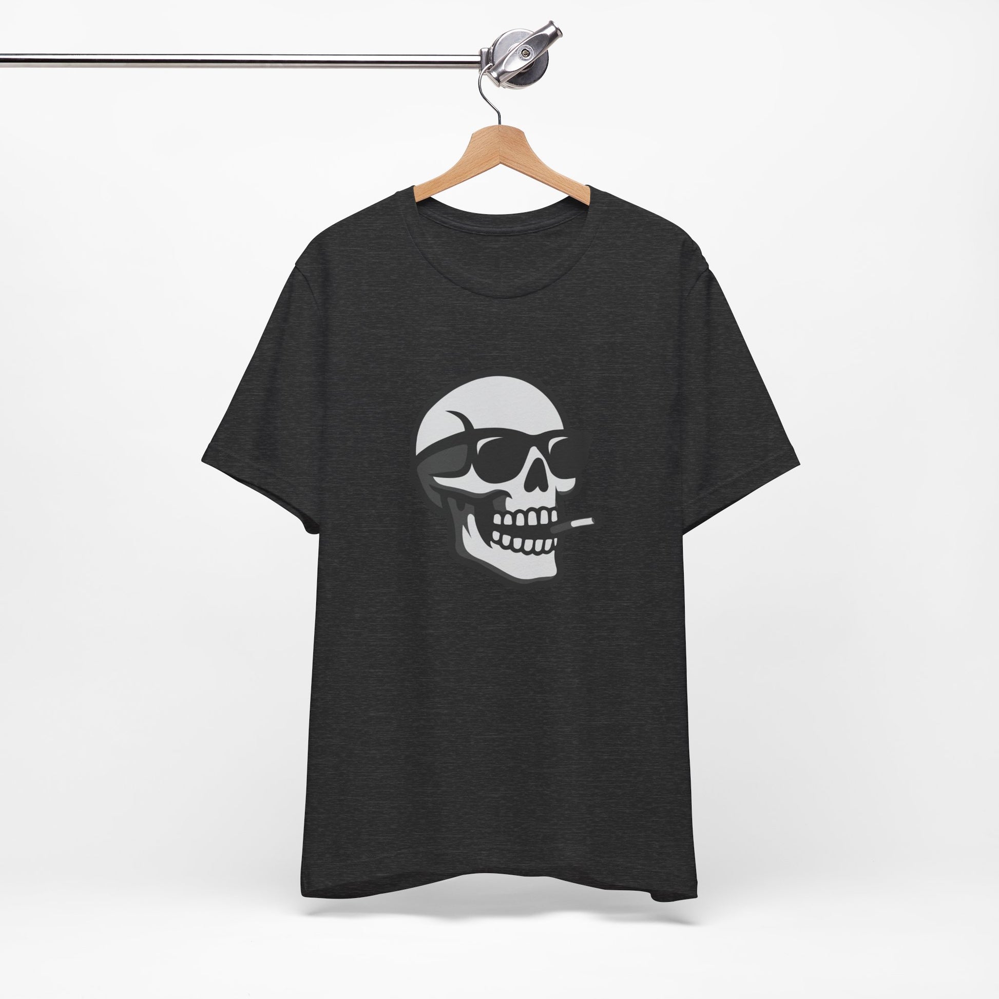 Bring bold energy to your wardrobe with this dark theme skull design — the perfect mix of rebellion and style. Featuring a grinning skull rocking shades and a cigarette, this vector artwork delivers clean dark lines and a modern ghost effect that stands out on black shirts. Ideal for those who walk their own path, this tee screams confidence, attitude, and a touch of danger. Stay cool, stay dark.