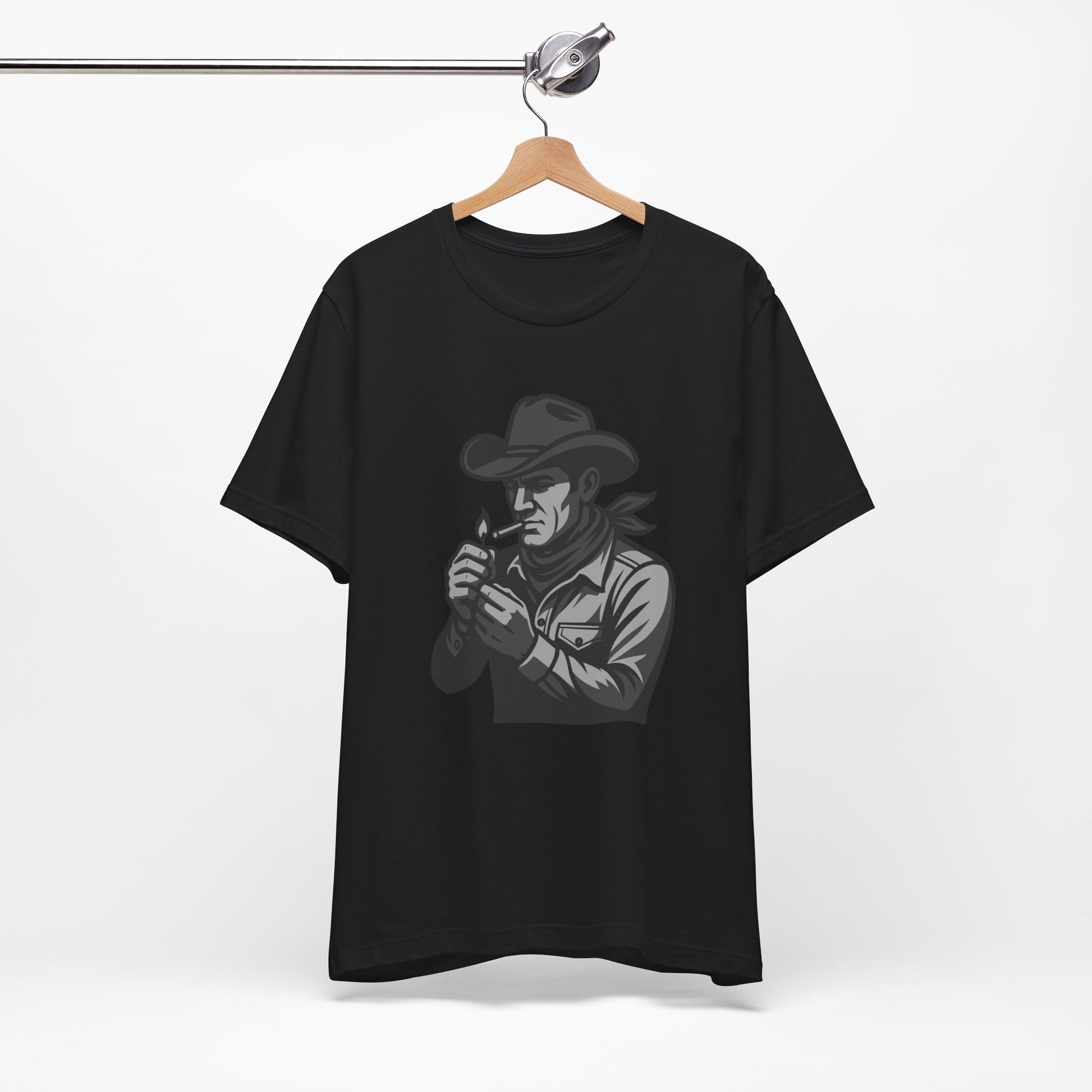 Cowboy Lighting Up Graphic Tee Dark Theme – Western Rebel Vector Design with Classic Attitude
