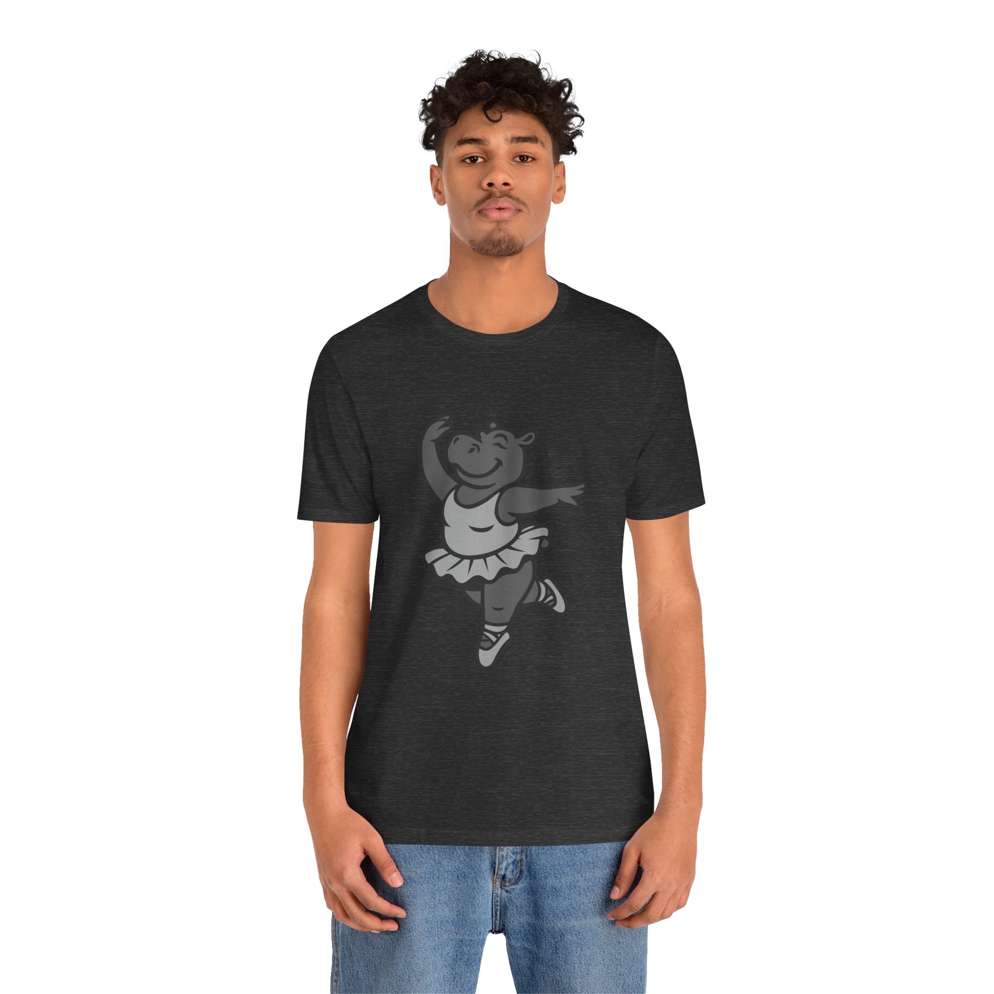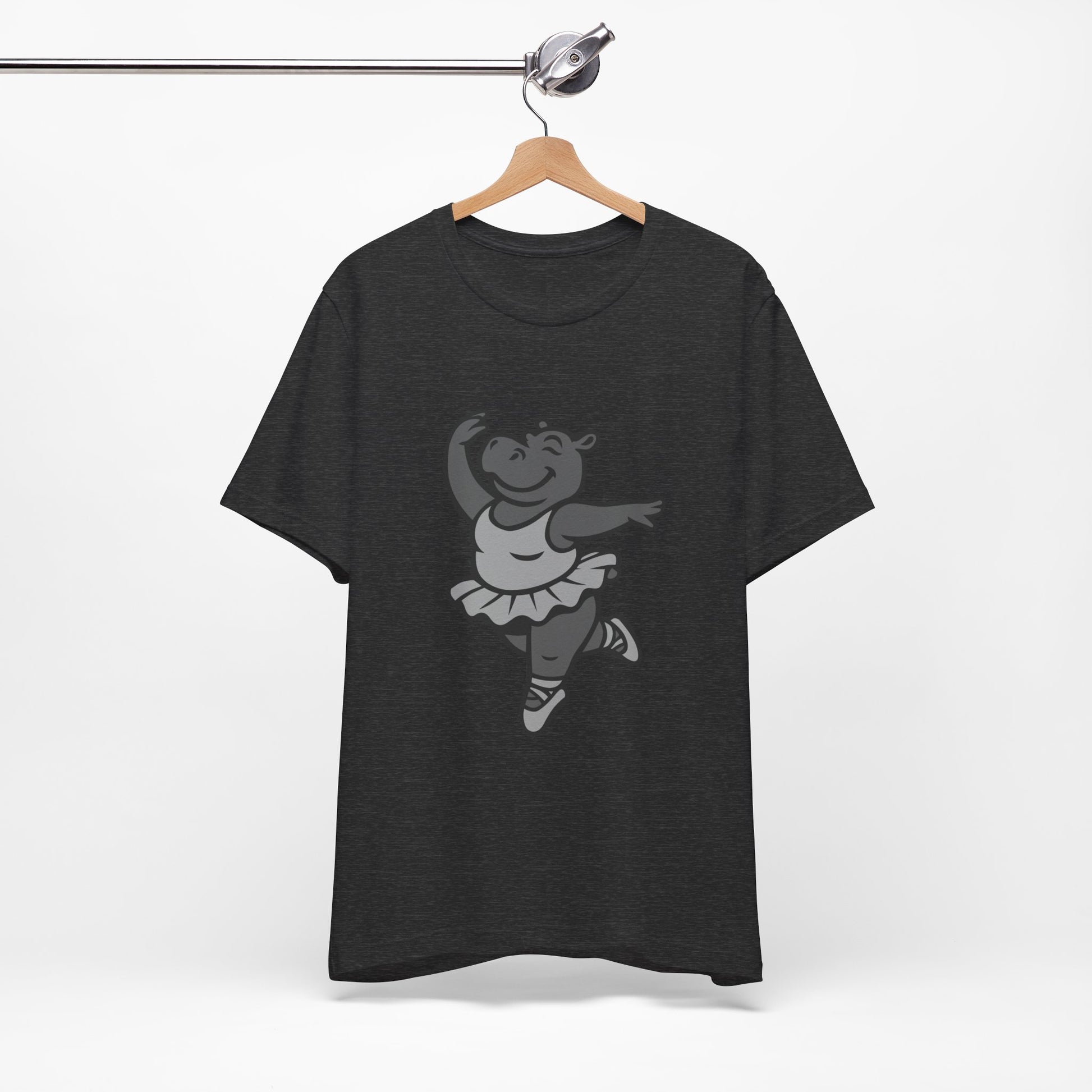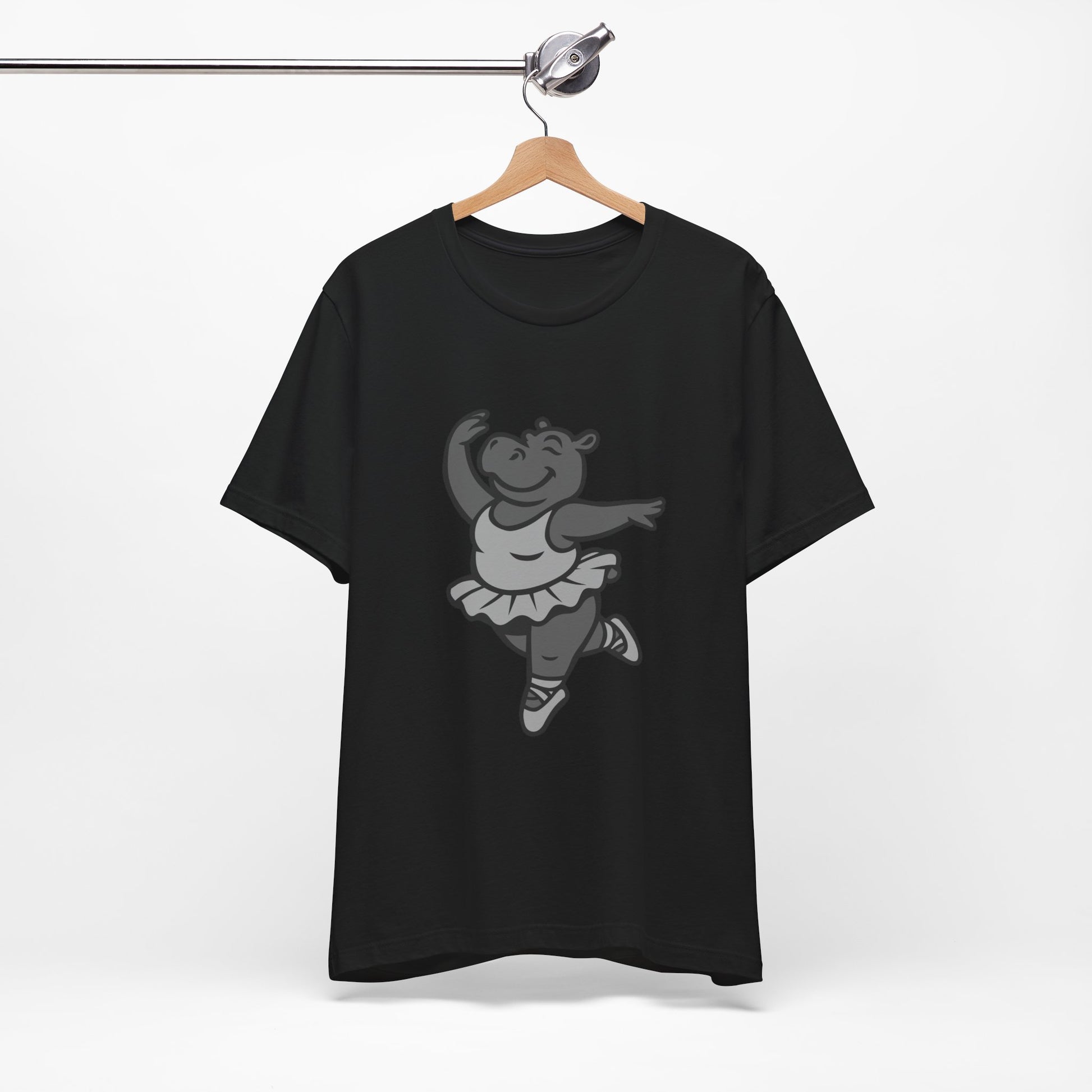 Dancing Hippo Graphic Tee Dark Theme – Funny Ballet Hippo Vector Design with Playful Energy