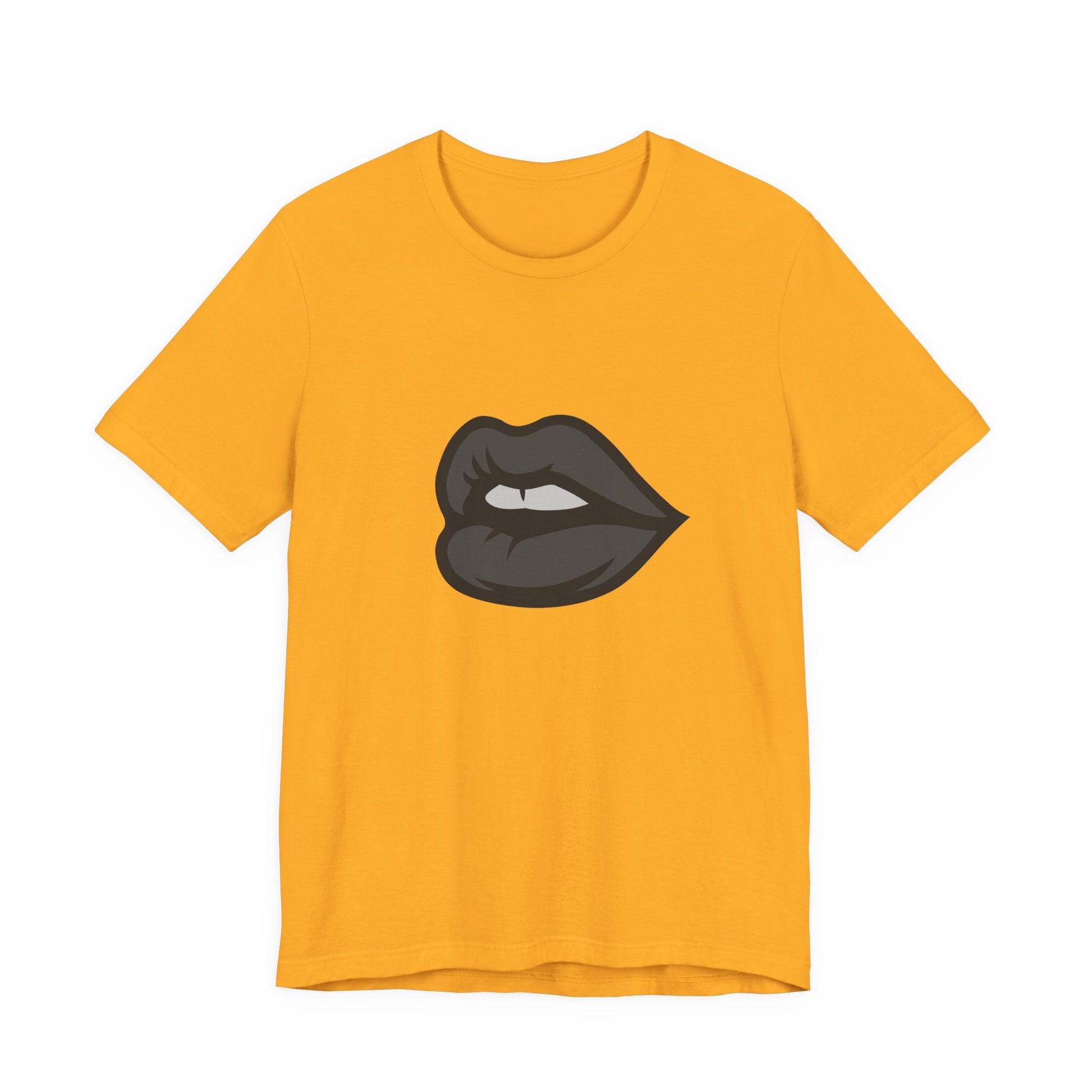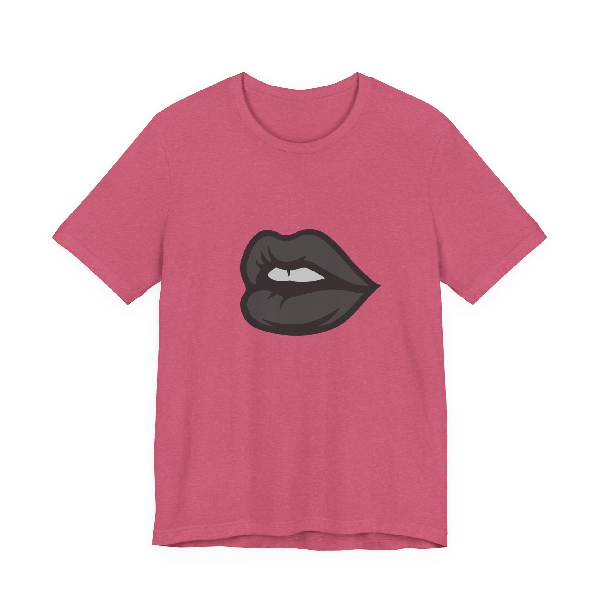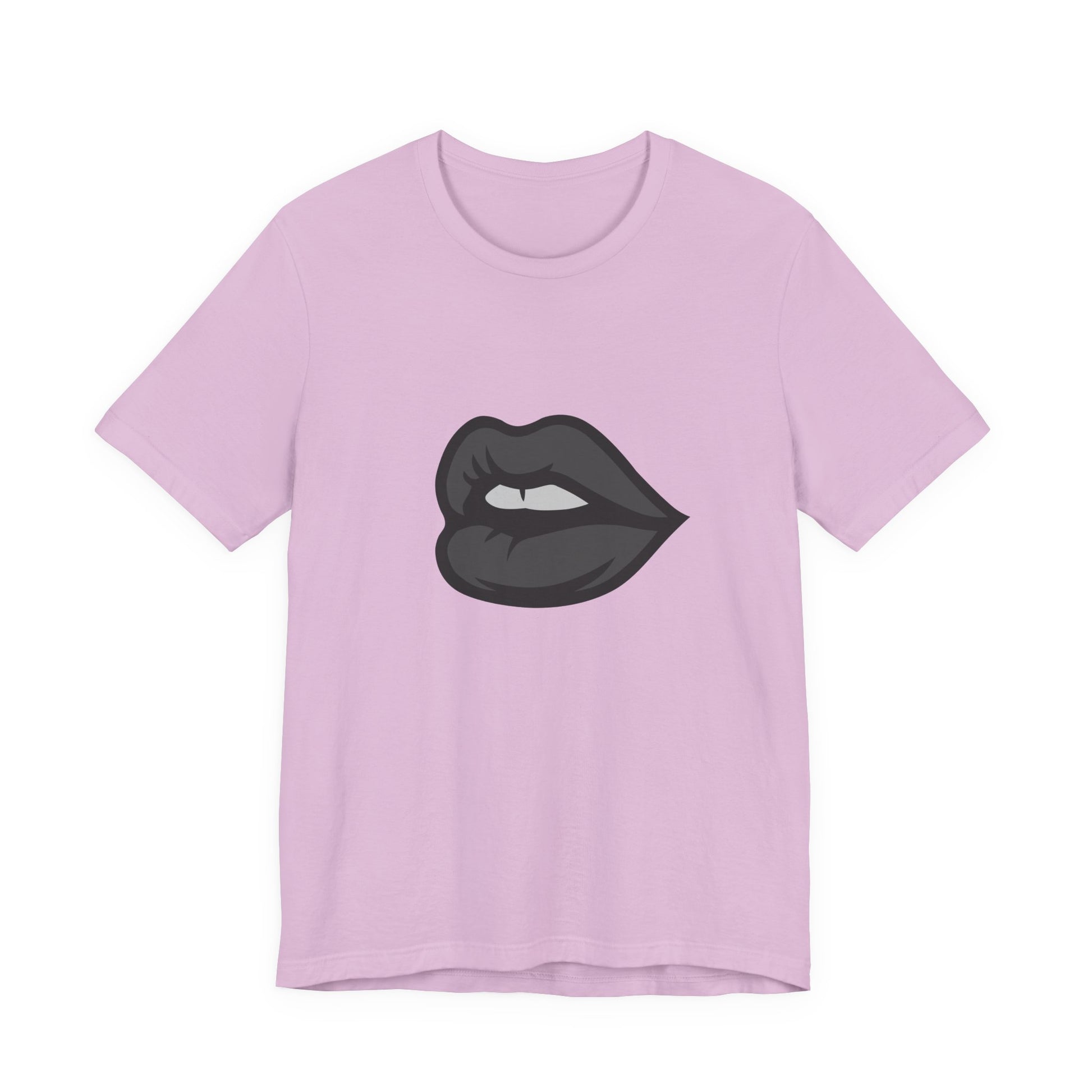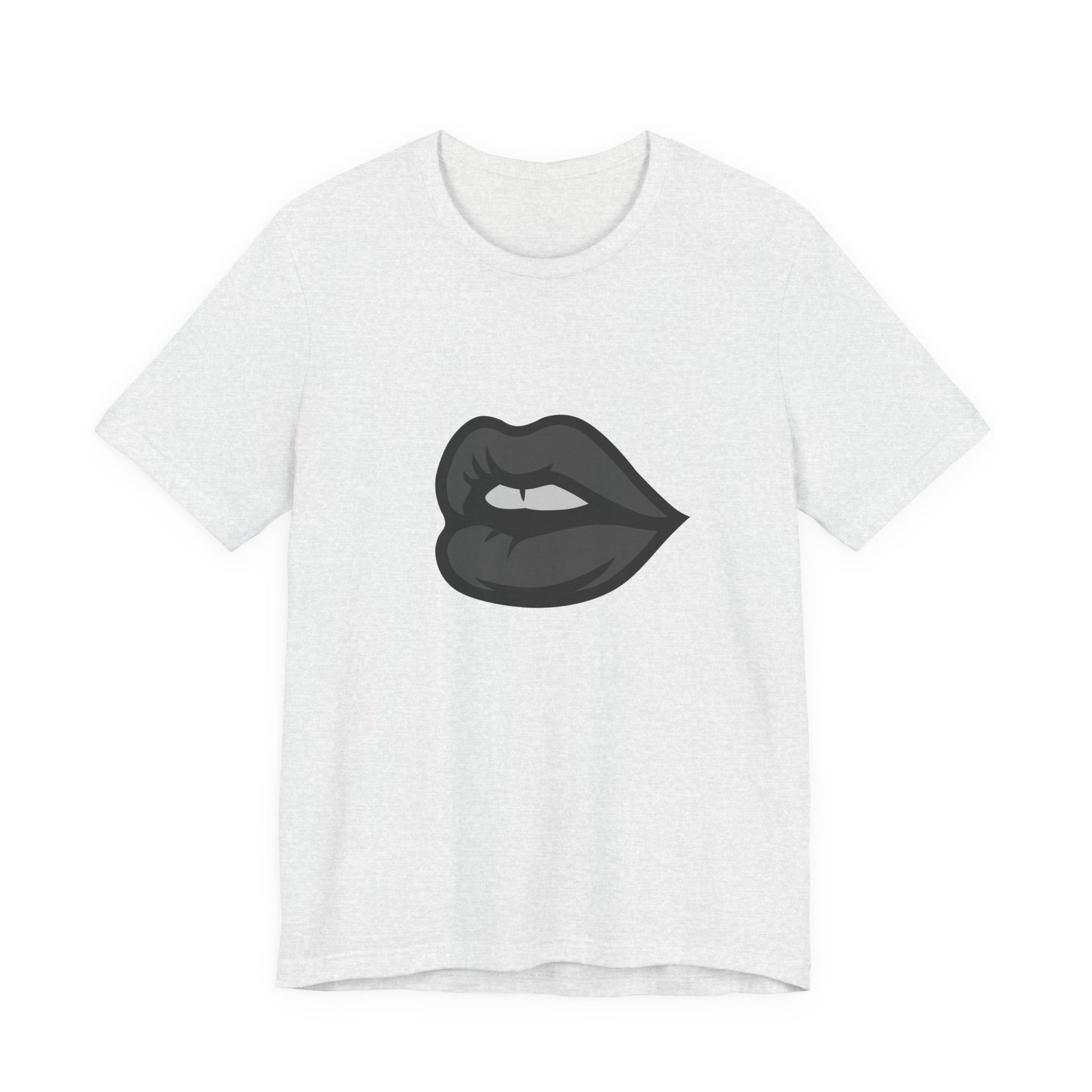 Add quiet heat to your look with this grayscale biting lip design. This shirt captures attitude and allure in one clean, shadowy image. The print uses a modern ghost effect, fading gently into the black fabric for a subtle, low-contrast finish. Ideal for those who like their boldness understated and their style just a little provocative.