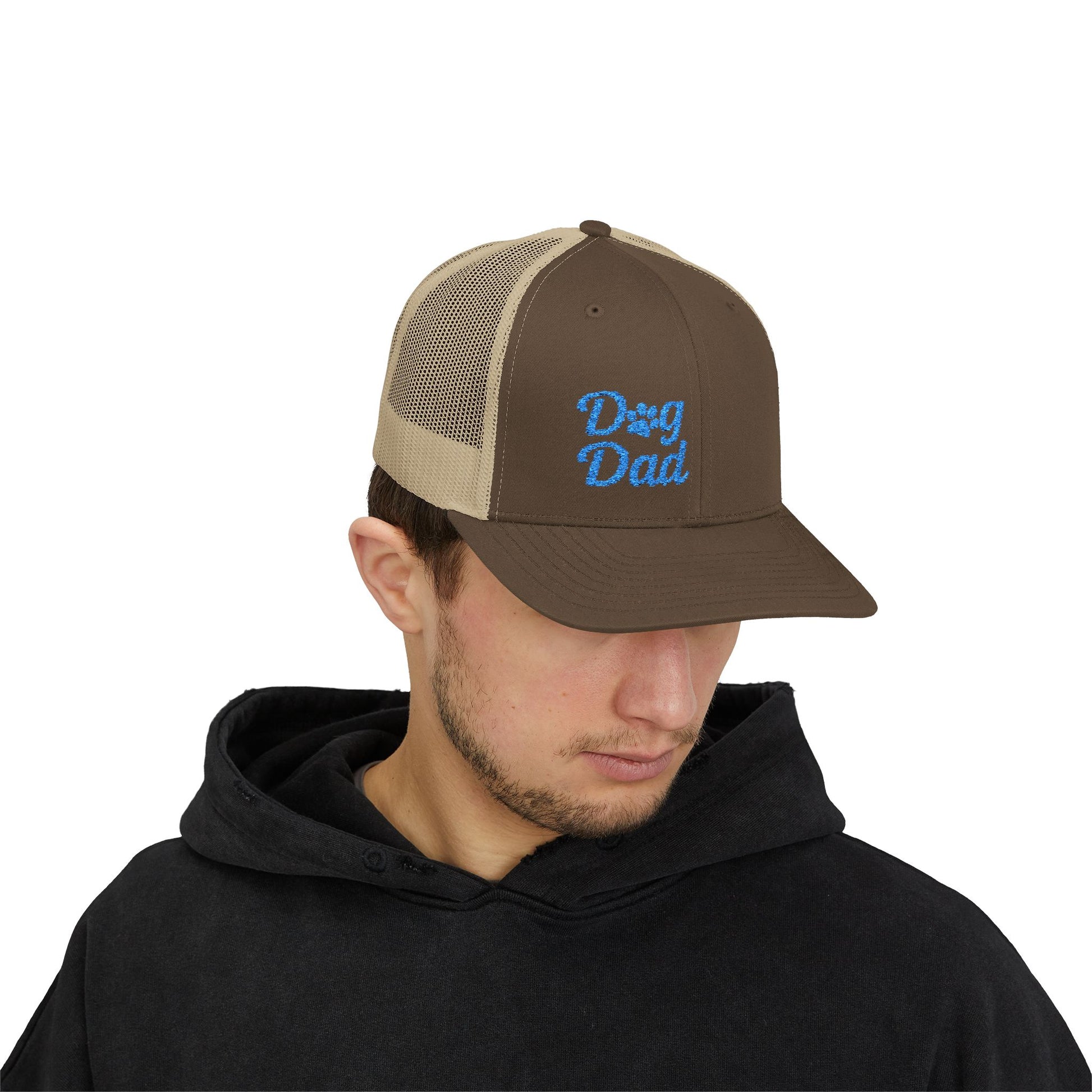 Dog Dad Trucker Hat – Embroidered Minimalist Dog Face Hat for Proud Pet Dads and Canine Companions. Blue Letters