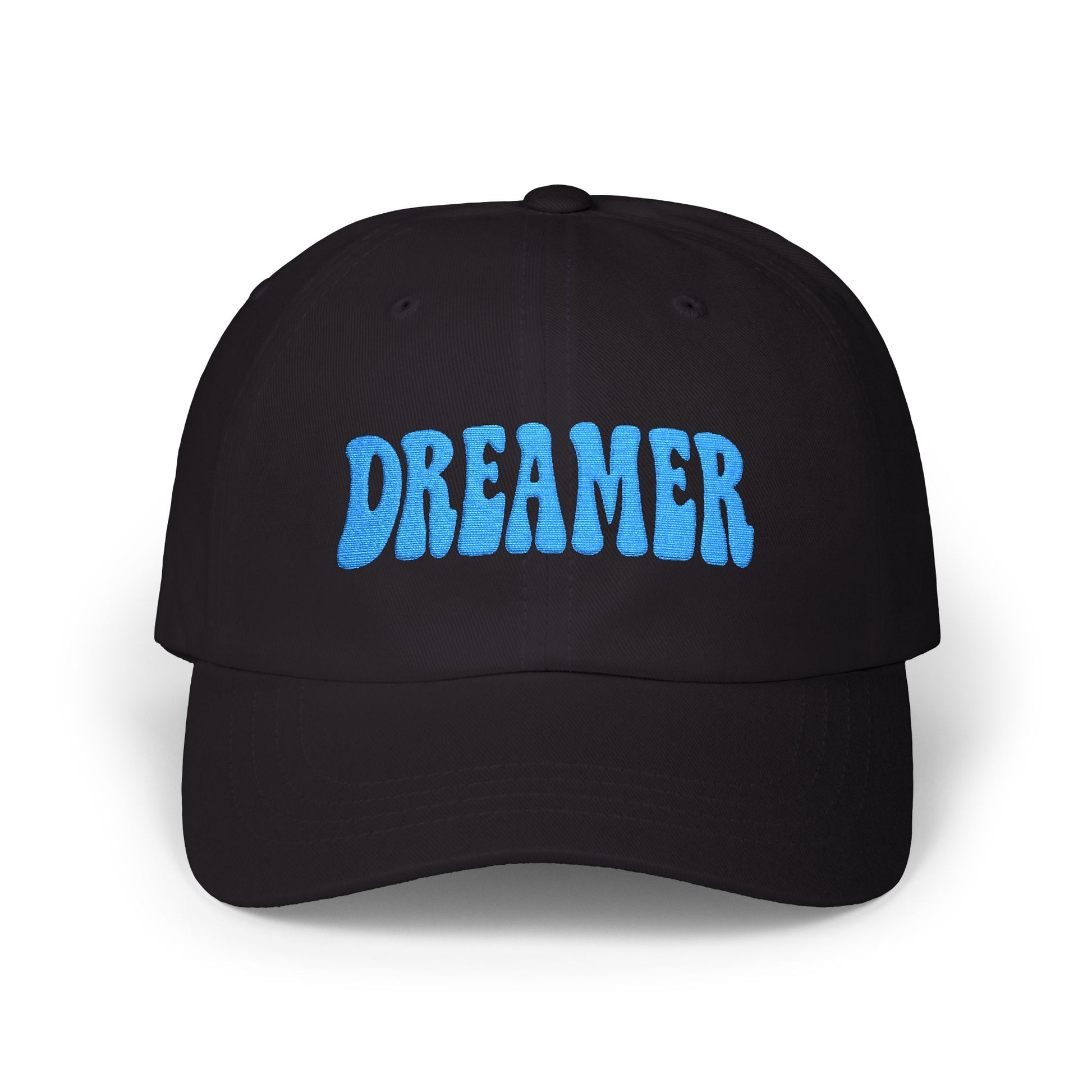 Dreamer Classic Dad Hat – Embroidered Minimalist Script Hat for Visionaries, Creatives, and Chill Daydreamers. Blue Letters