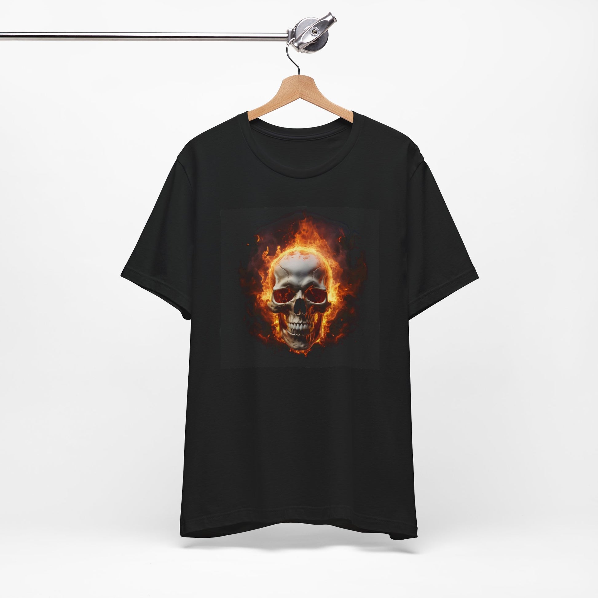 Flaming Skull Halloween Shirt – Intense Fire Skull Graphic Tee for Hardcore Spooky Season Style