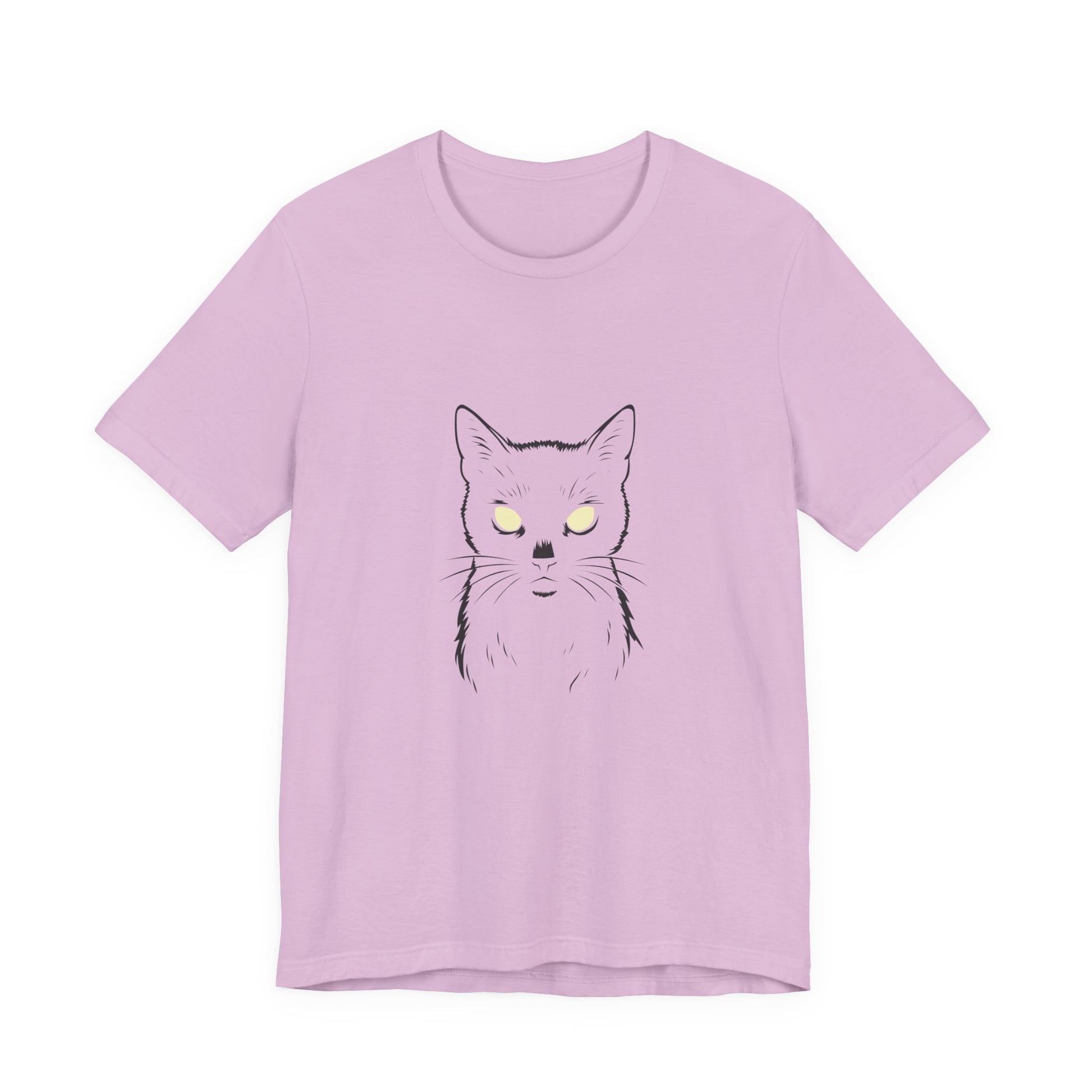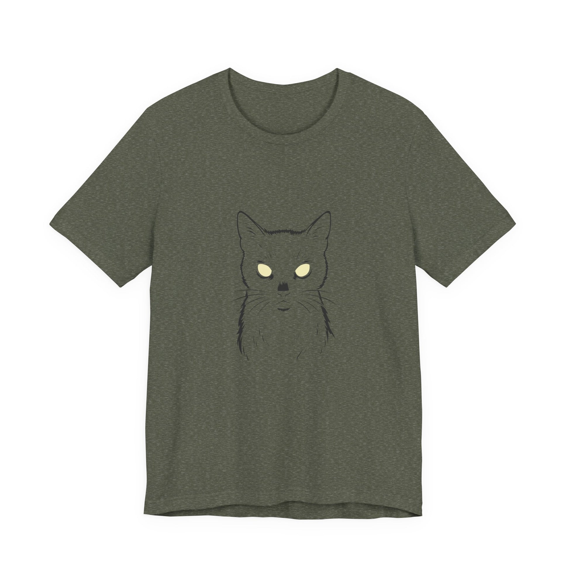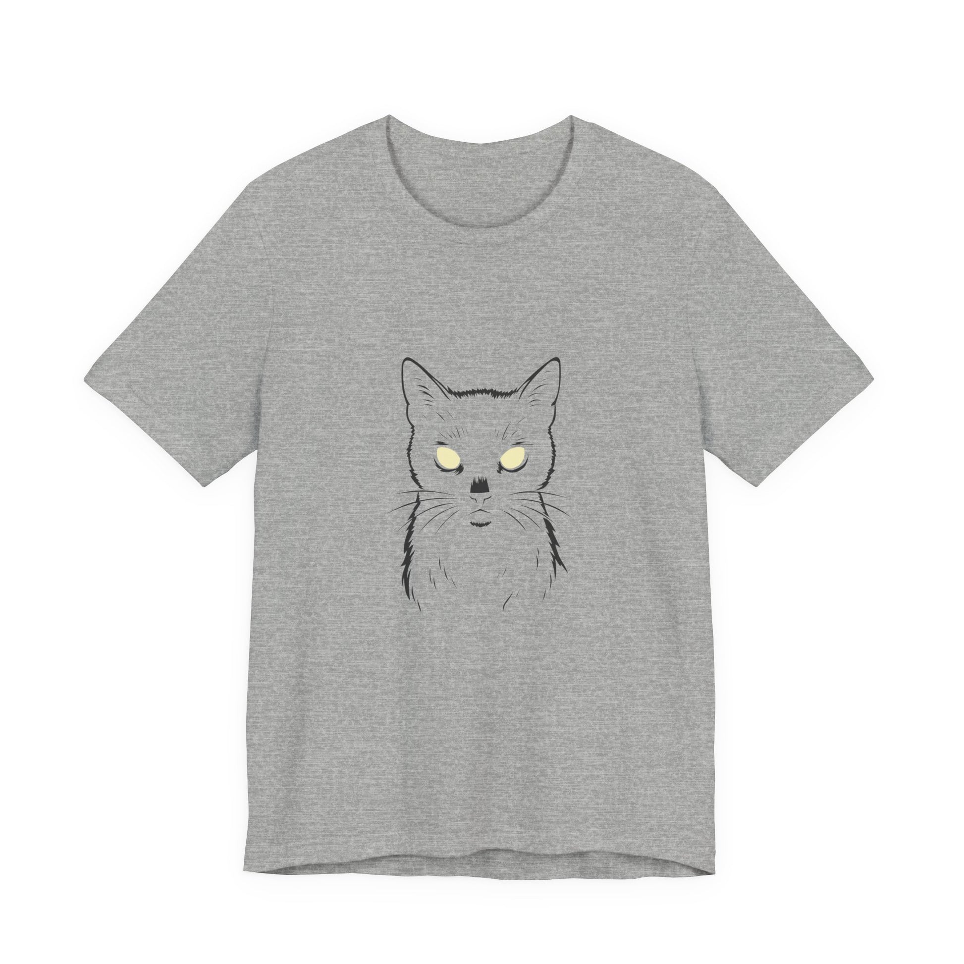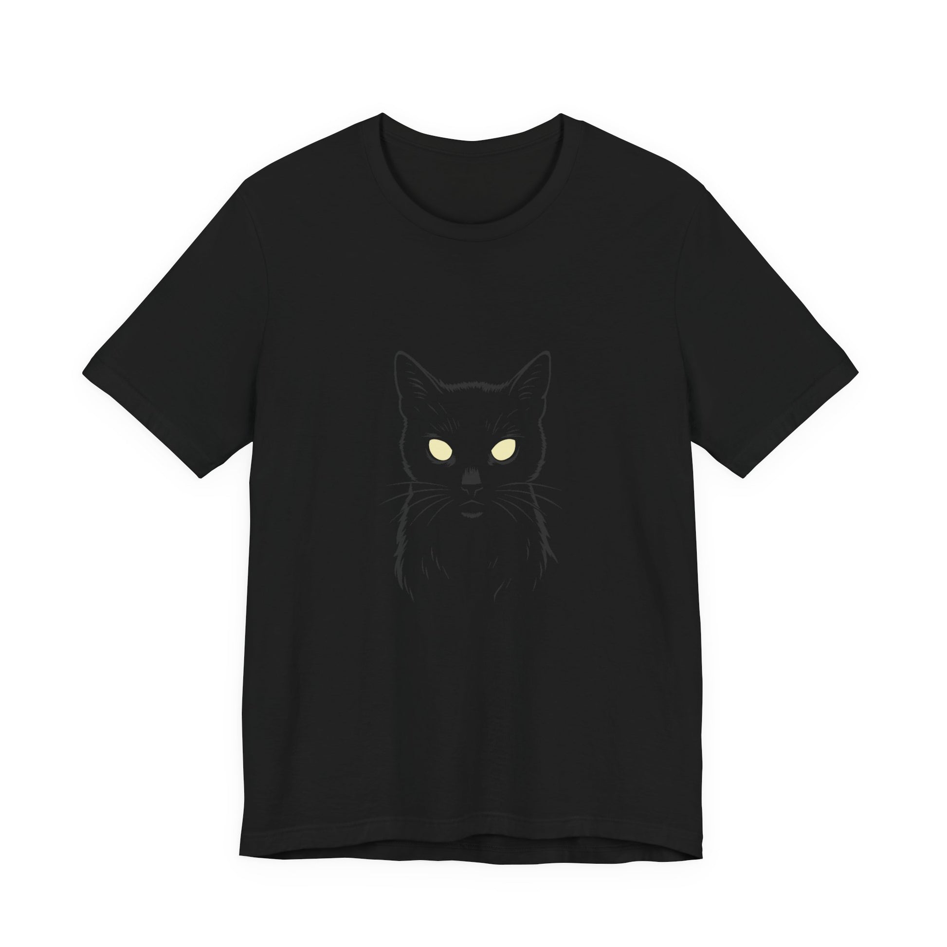 Ghost Cat Eyes Tee – Dark Theme Black Cat Outline with Transparent Face and Glowing Stare. Unisex Jersey Short Sleeve Tee
