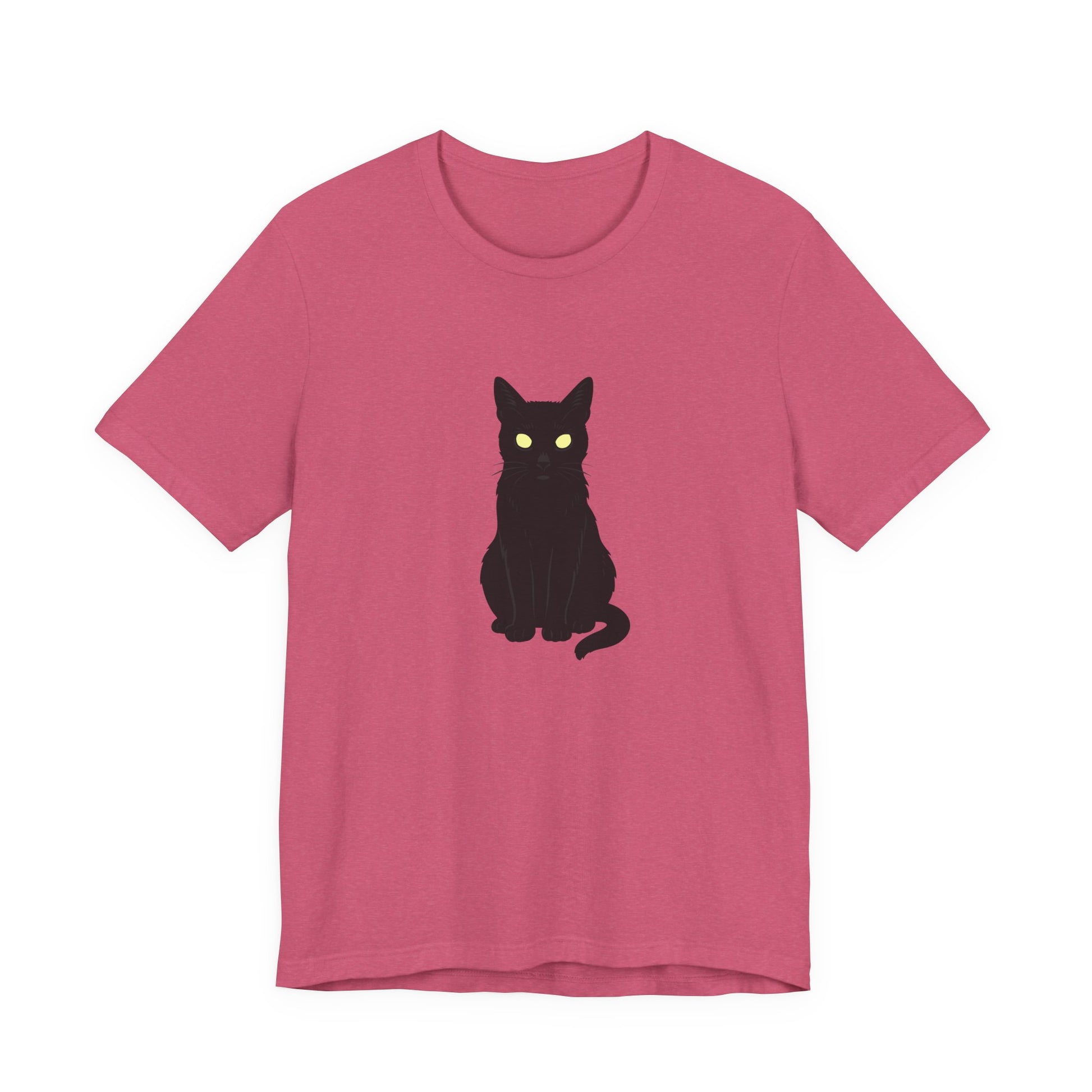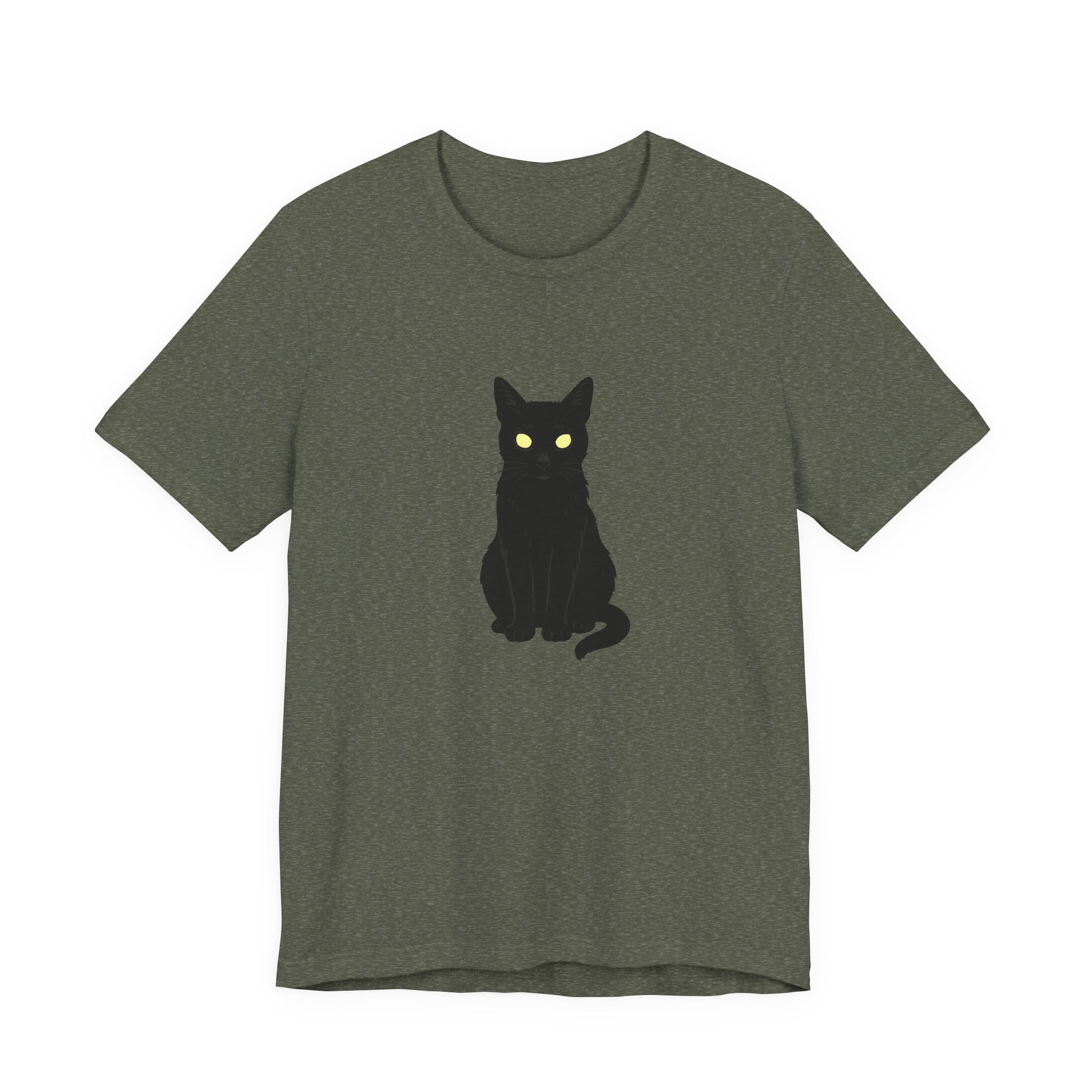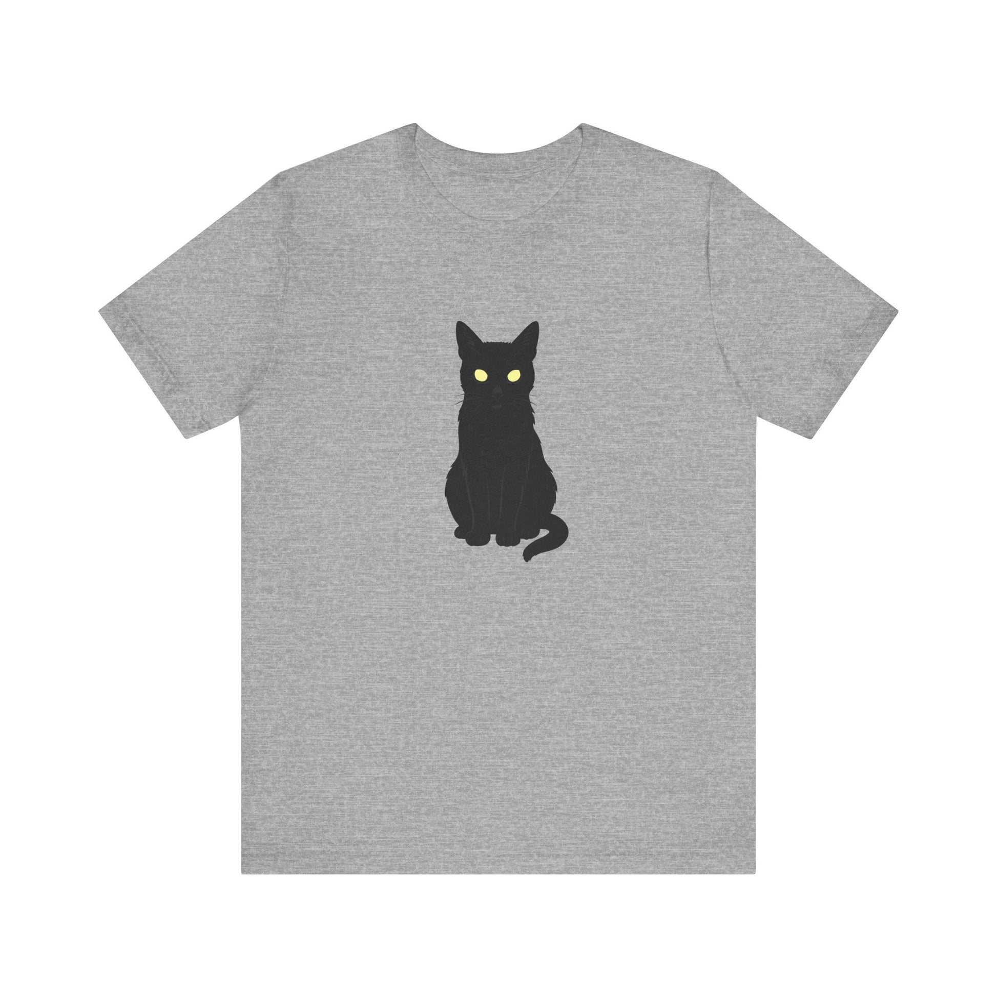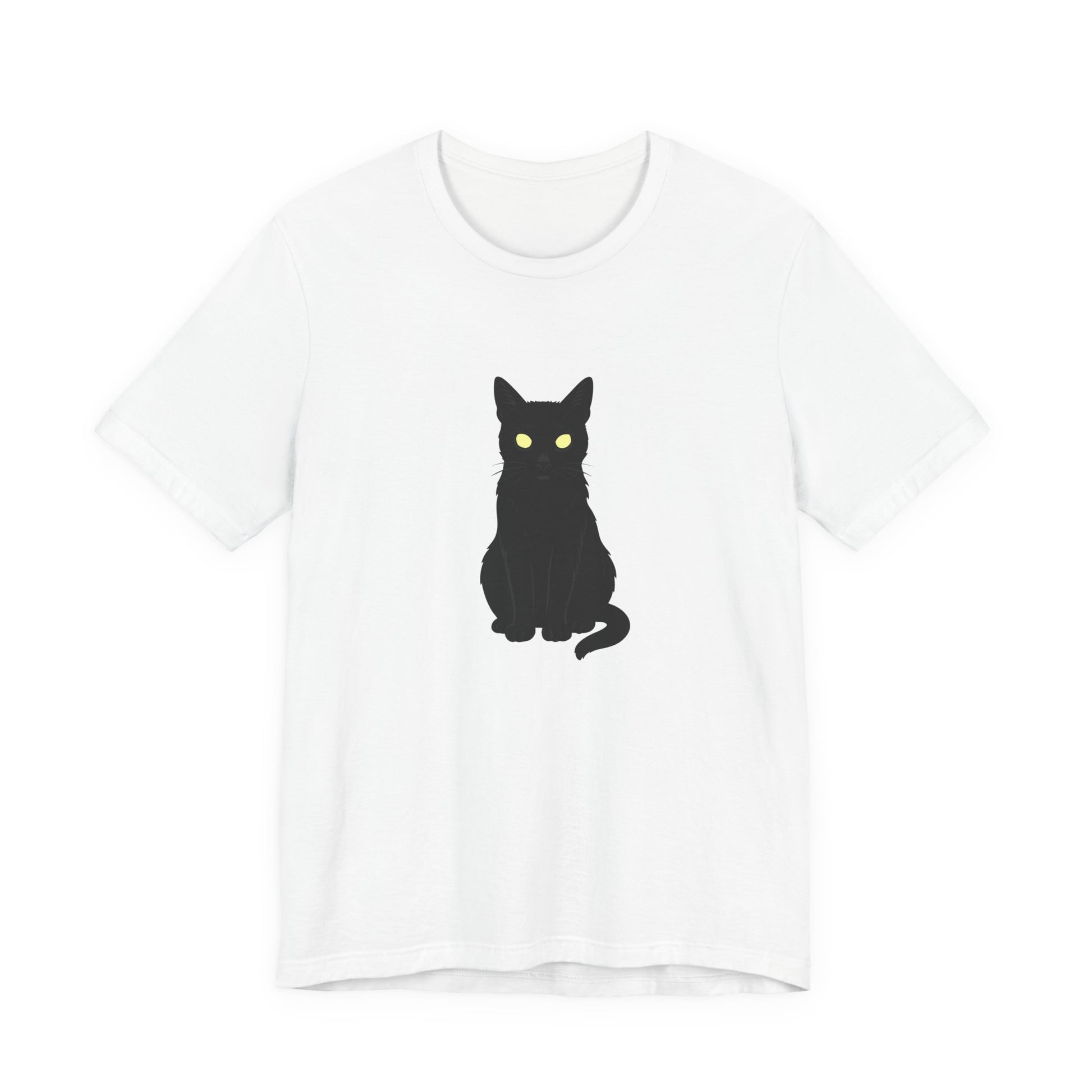 Glowing-Eyed Black Cat Shirt – Dark Theme Feline Stare for Maximum Spook and Minimal Effort. Unisex Jersey Short Sleeve Tee
