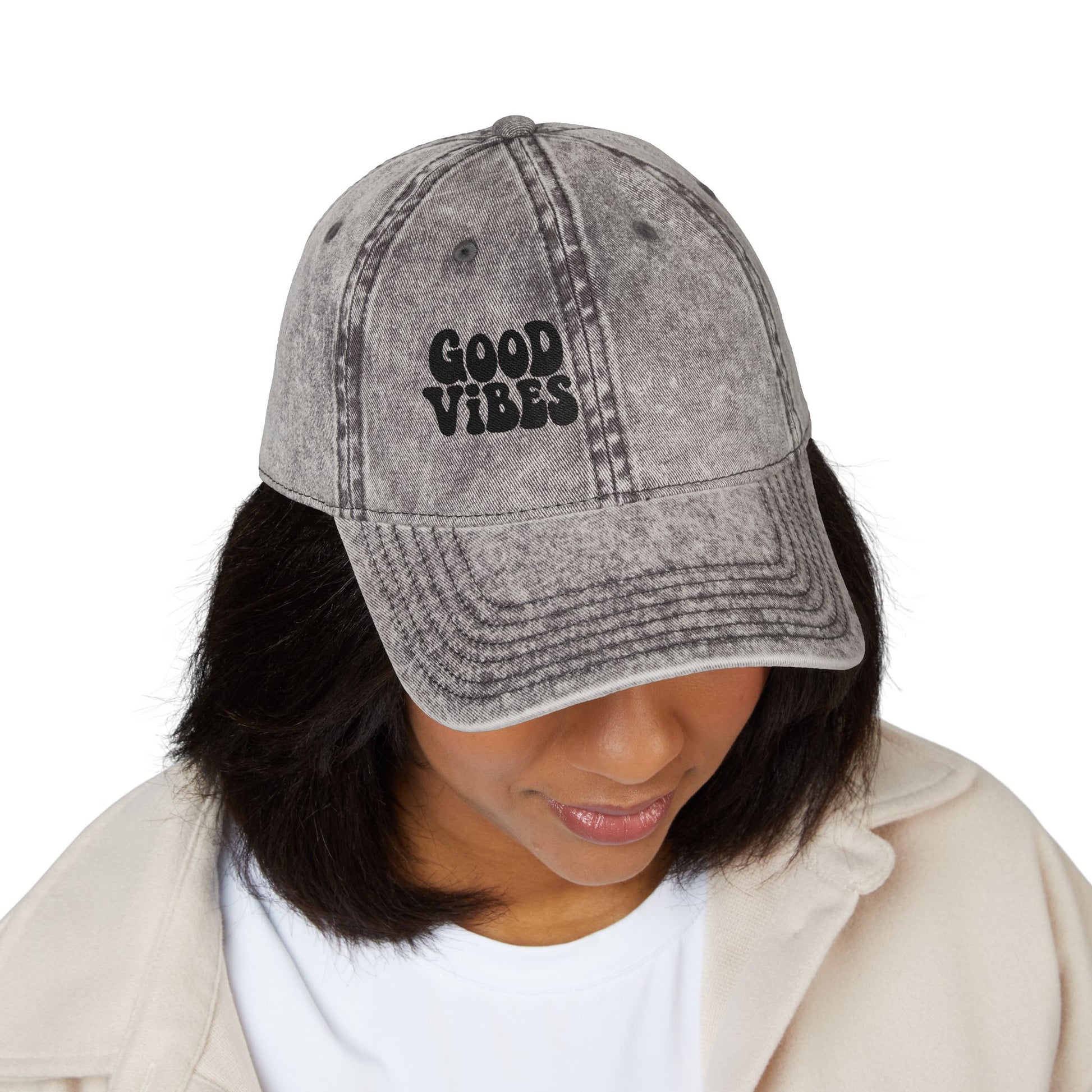 Good Vibes Vintage Hat – Embroidered Retro Text Hat for Positive Vibes, Chill Style, and Everyday Feel-Good Energy