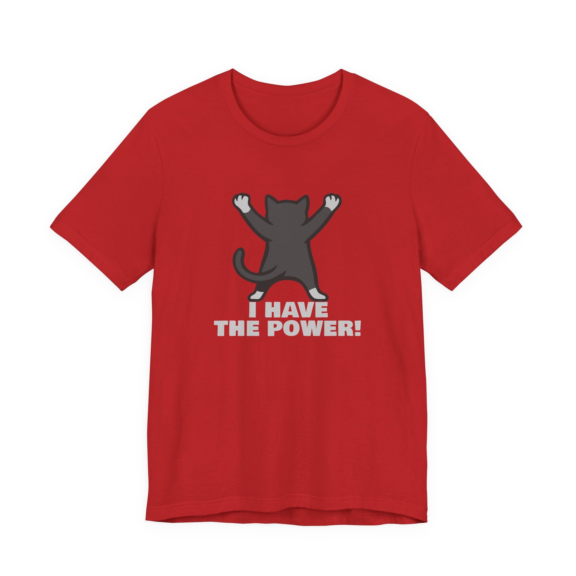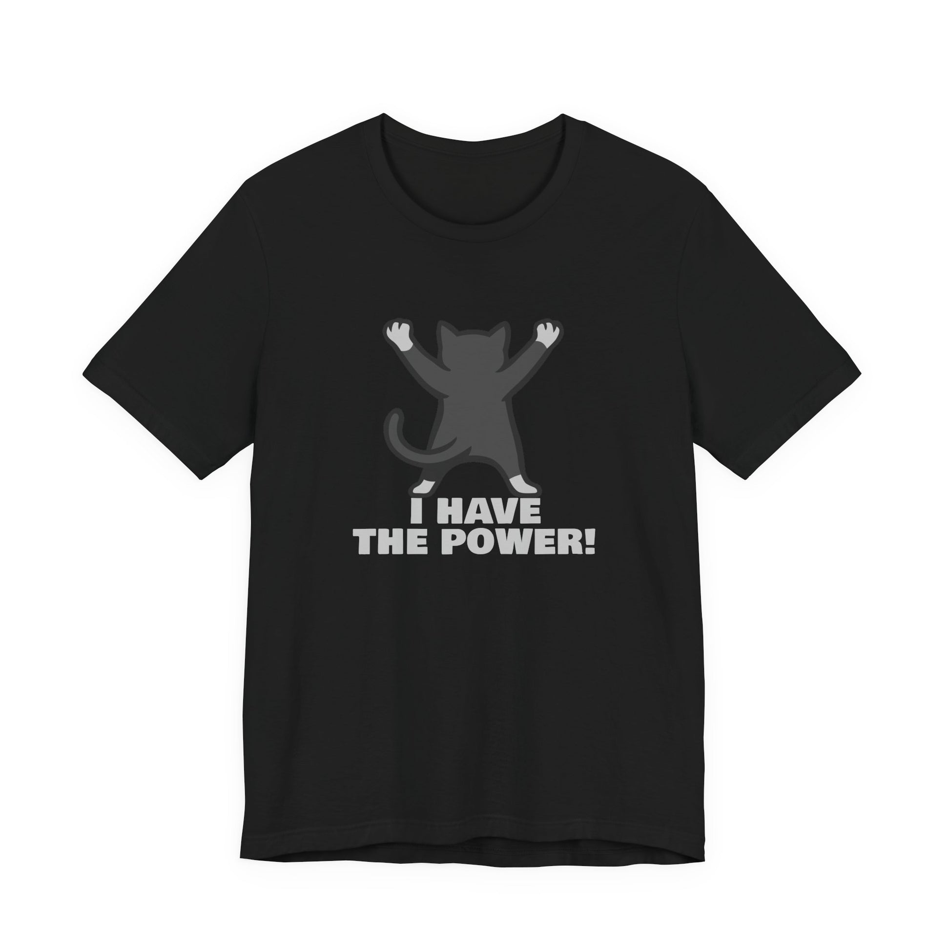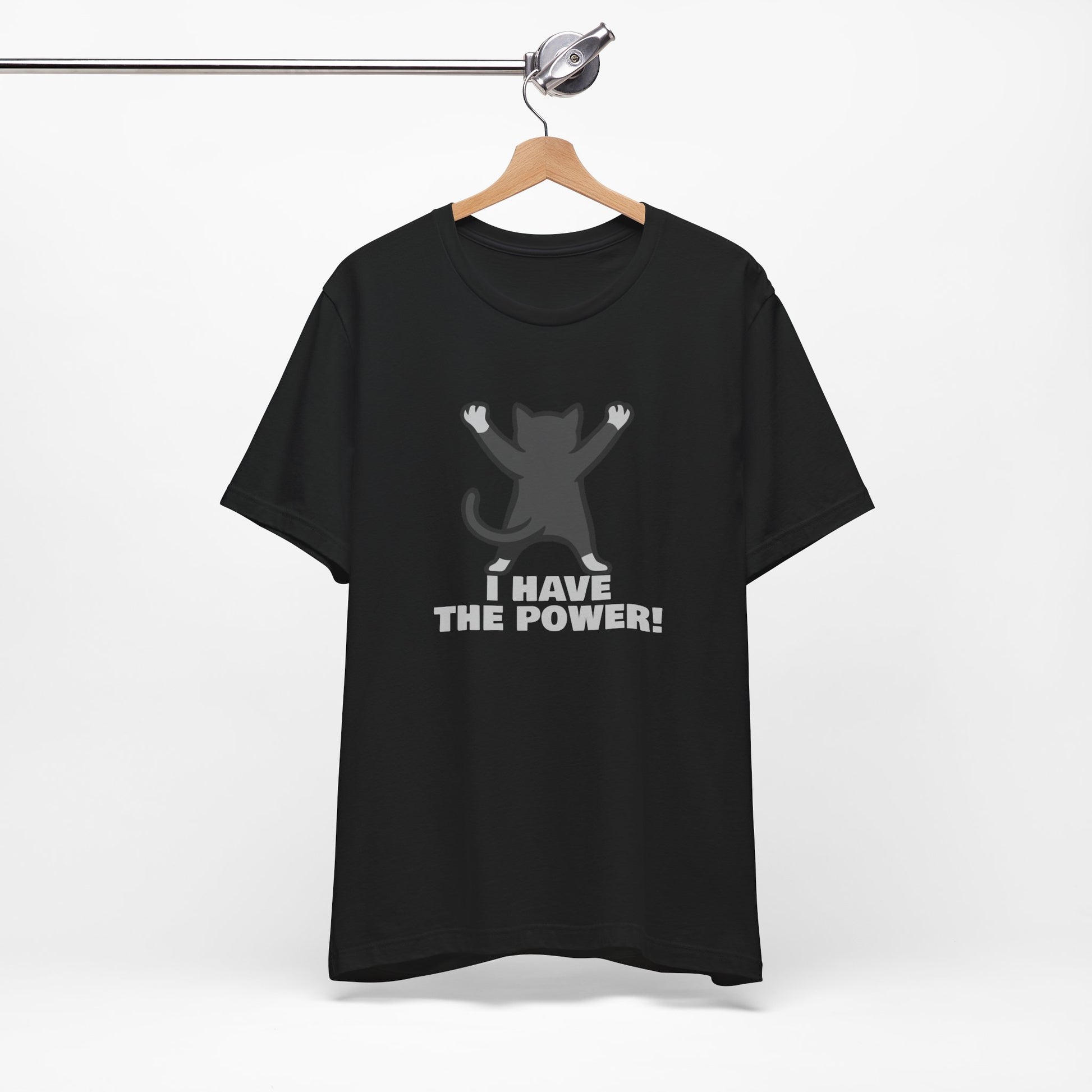 I Have the Power Cat Shirt – Hilarious Victory Pose in Dark Theme Feline Graphic Style. Unisex Jersey Short Sleeve Tee