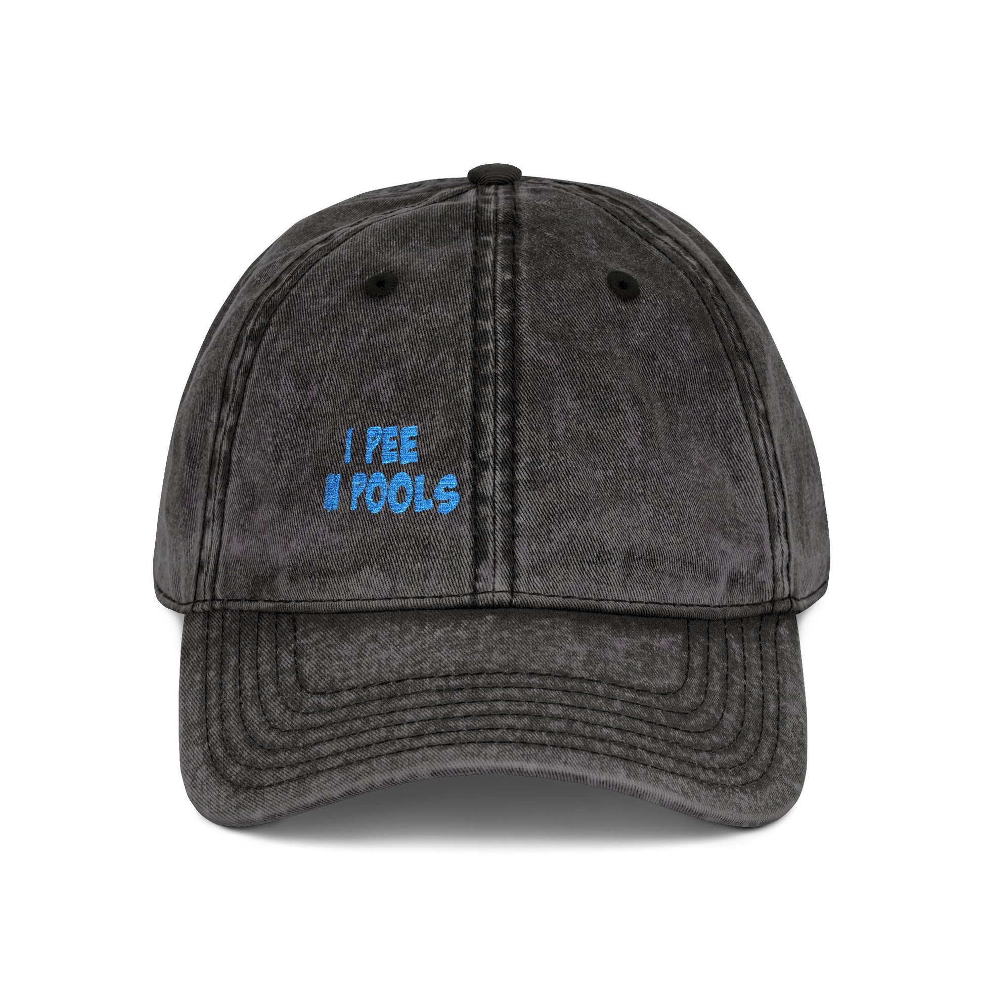 I Pee In Pools Vintage Hat – Funny Hat with Bold Blue Text for Lifeguard Terrors and Poolside Menaces