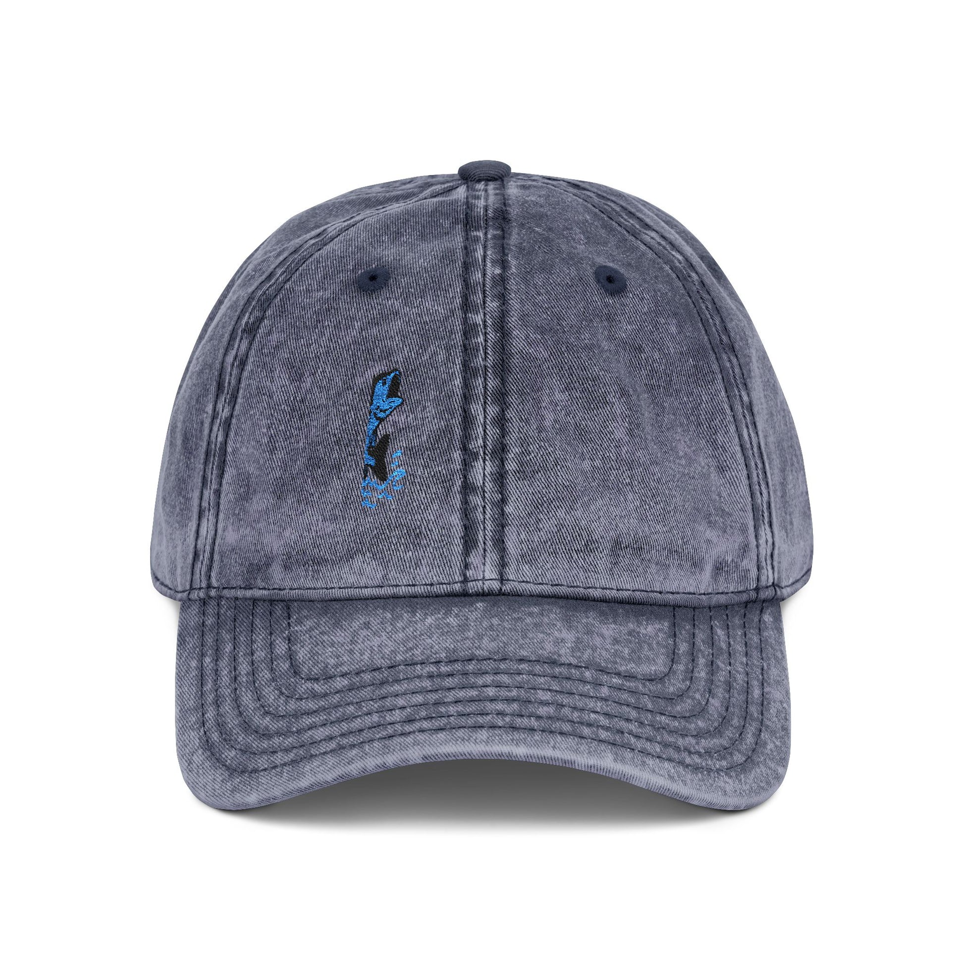 Hooked on fishing? The Jumping Fish Vintage Hat is for you. Featuring a bold blue embroidered fish mid-leap, this hat brings serious freshwater energy to your everyday look. Whether you're casting lines or just daydreaming about your next catch, this hat keeps your style reel sharp.