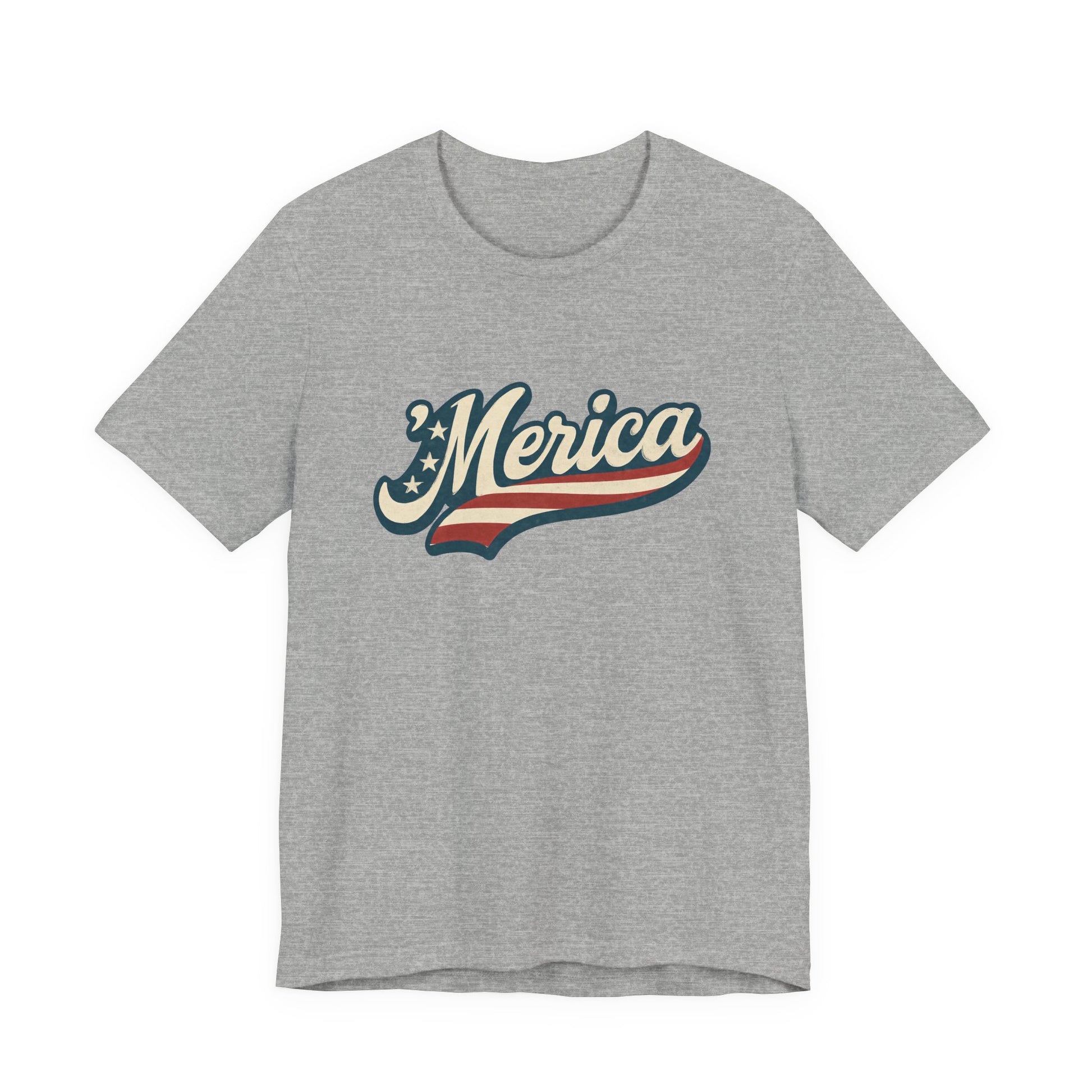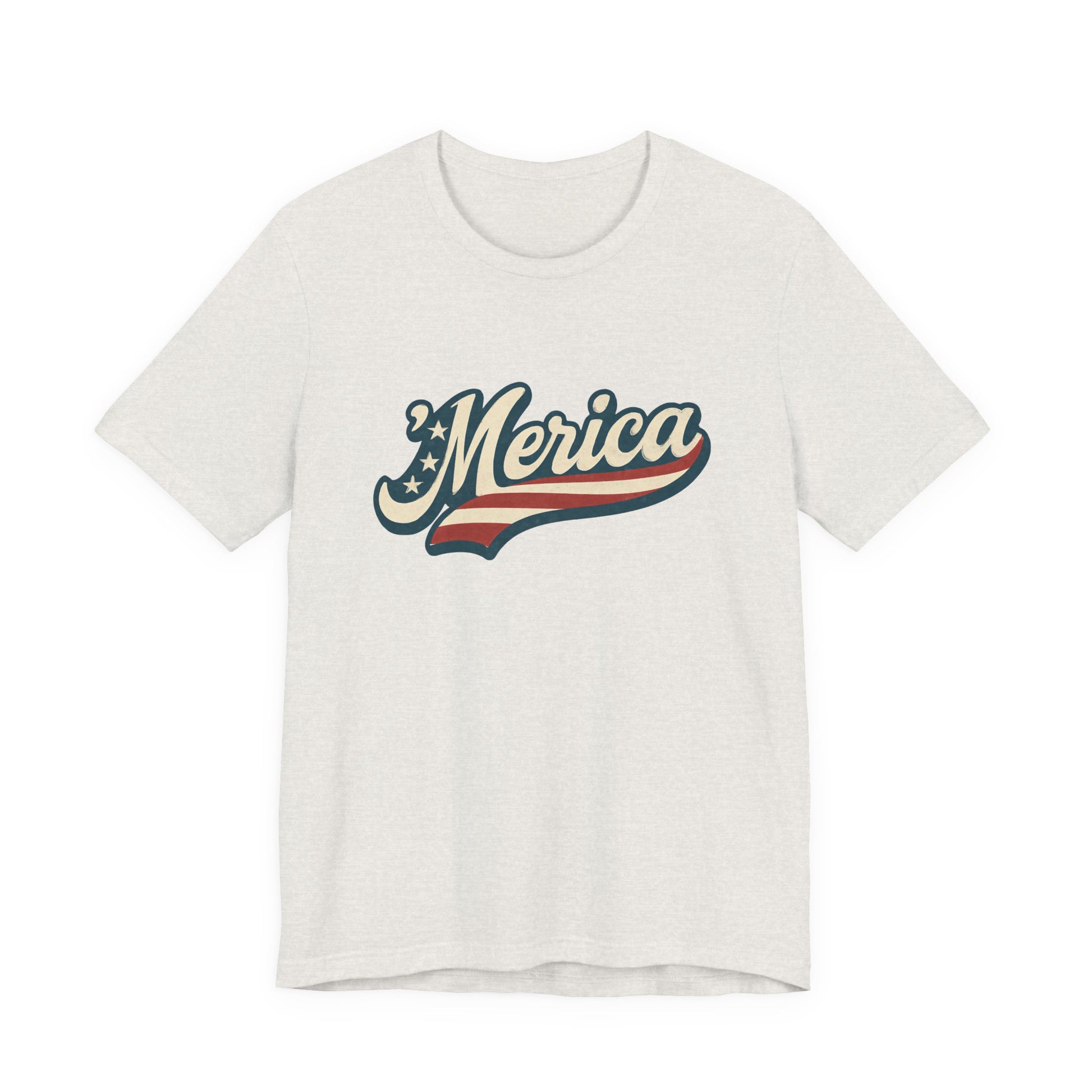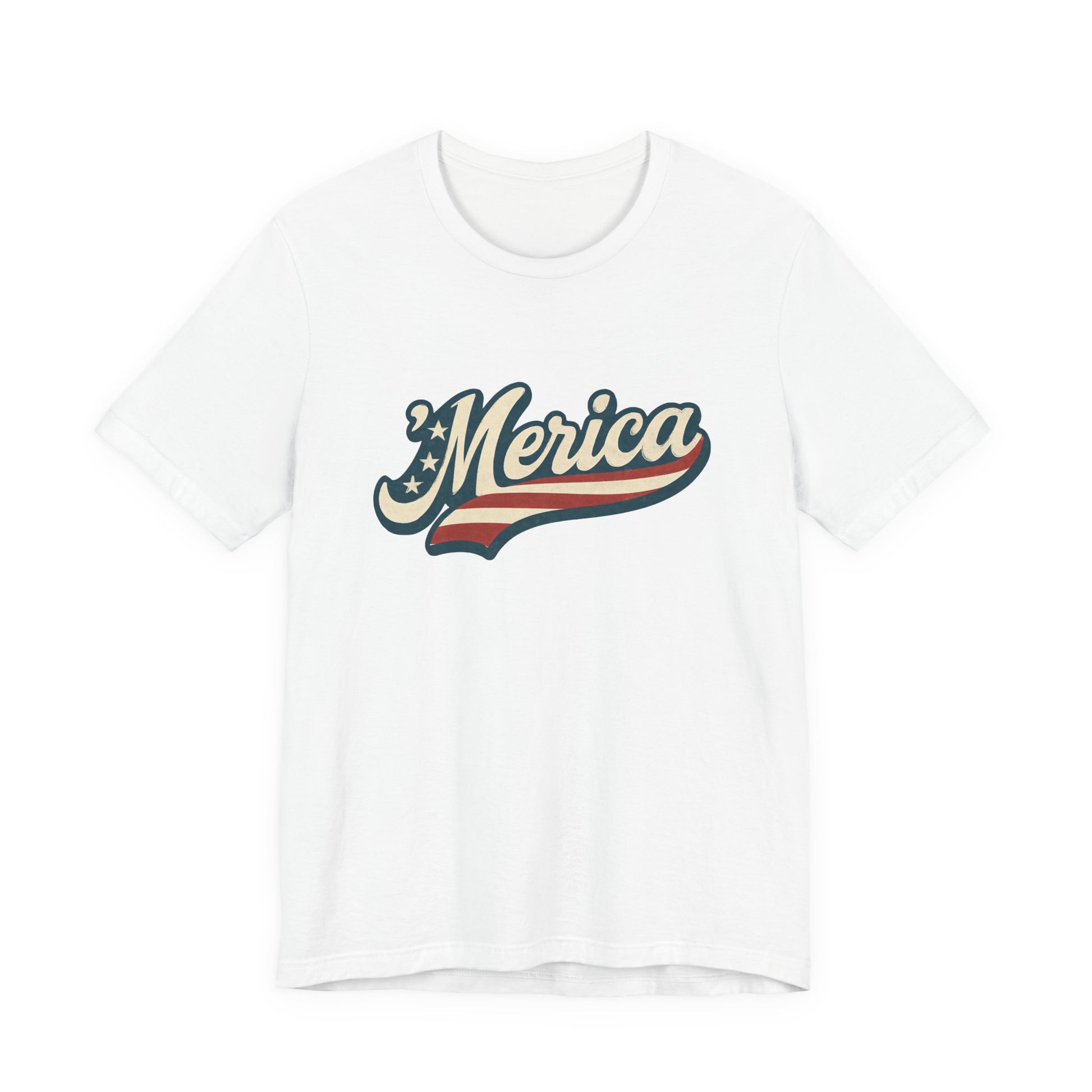 'Merica Vintage Script Shirt – Patriotic Retro USA Tee for 4th of July – Independence Day American Pride Design. Unisex Jersey Short Sleeve Tee