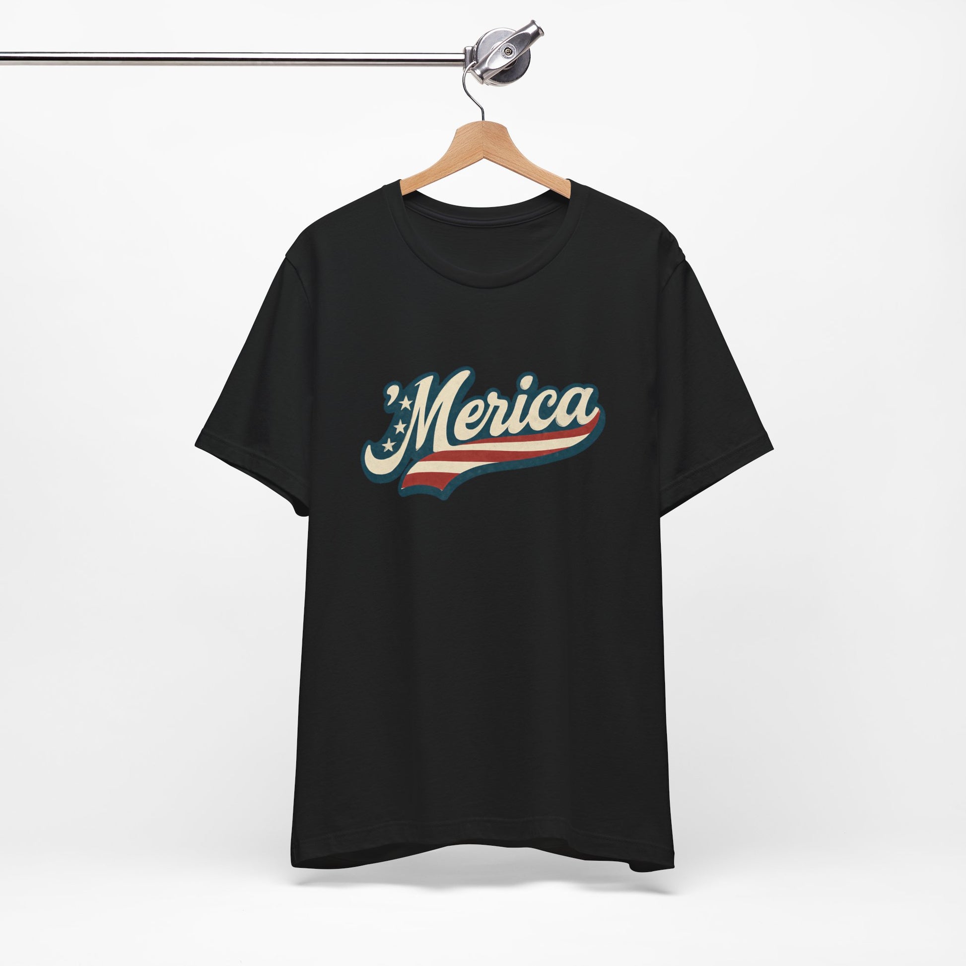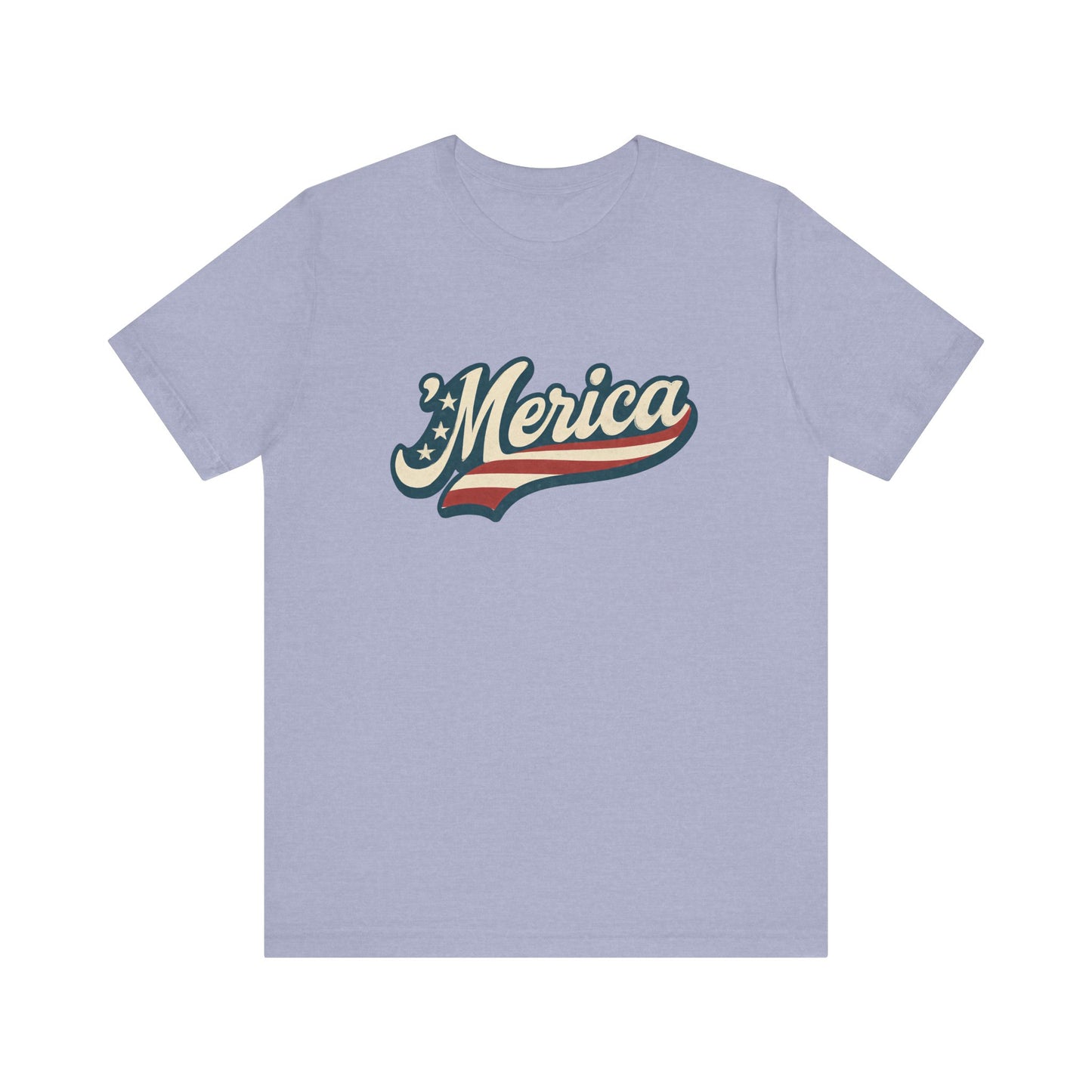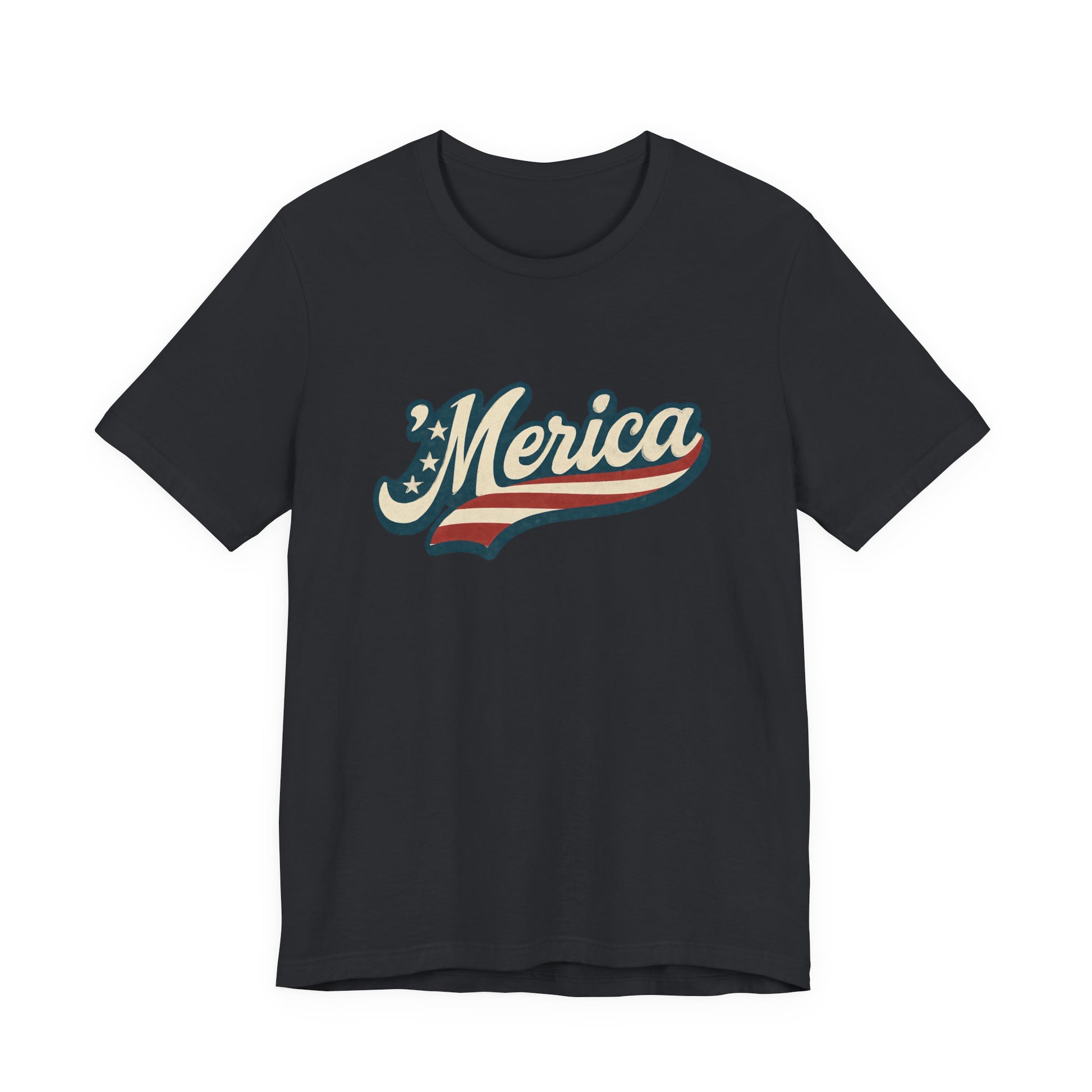 'Merica Vintage Script Shirt – Patriotic Retro USA Tee for 4th of July – Independence Day American Pride Design. Unisex Jersey Short Sleeve Tee