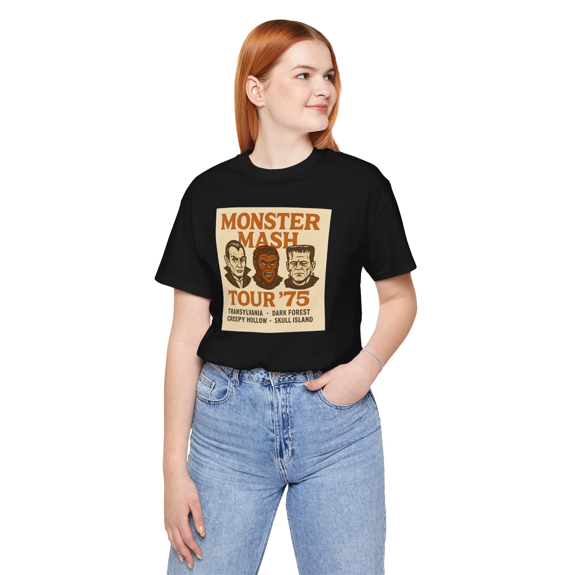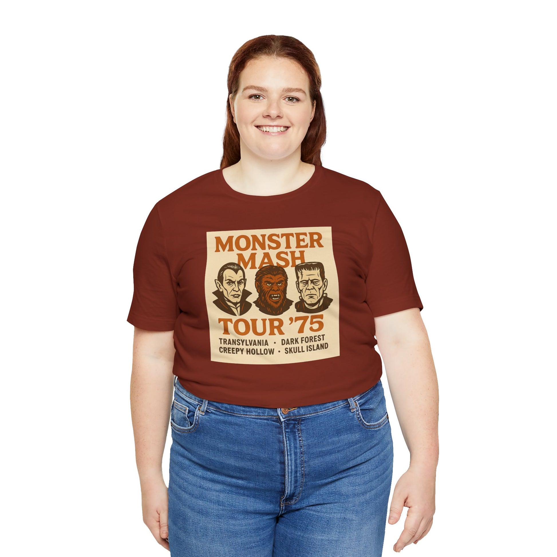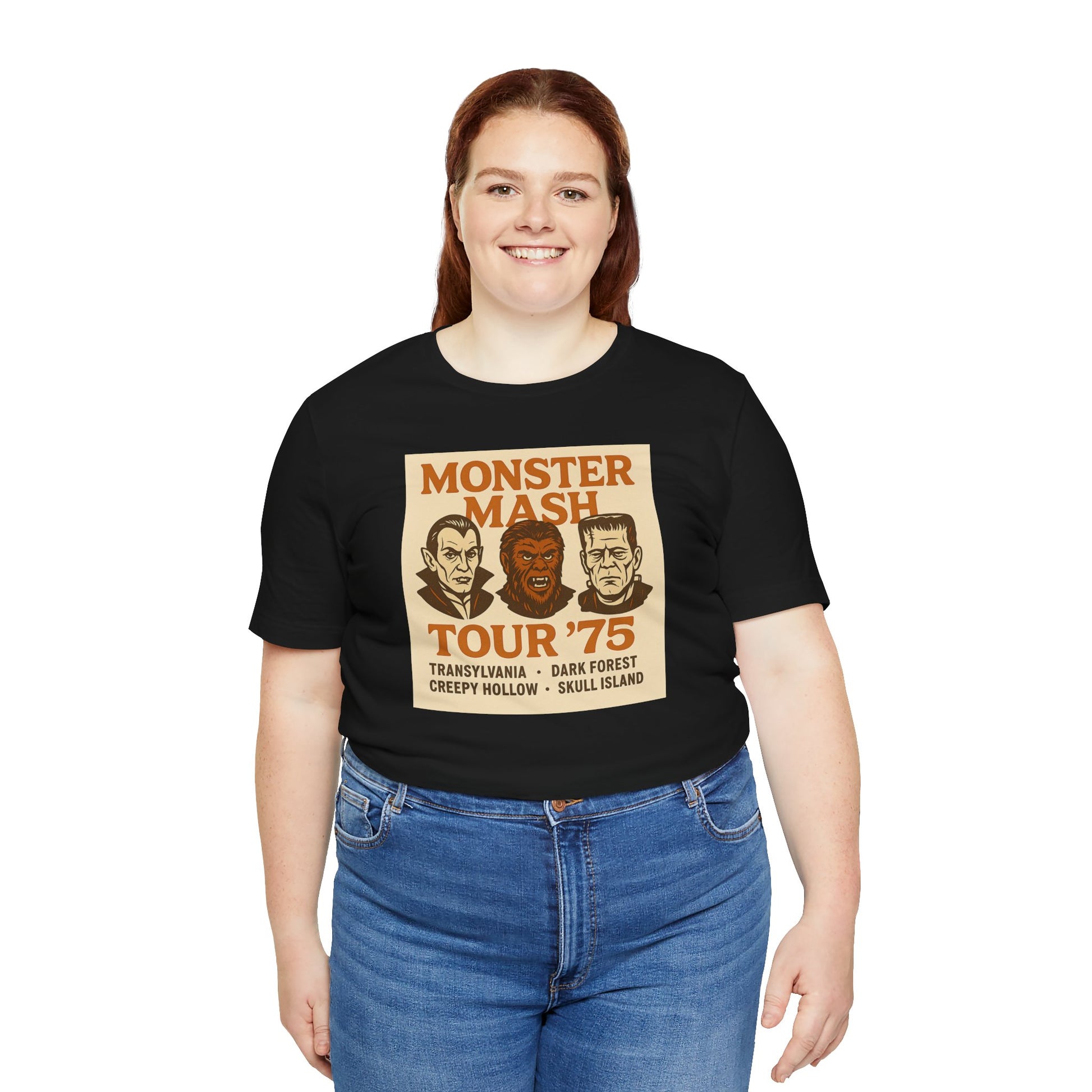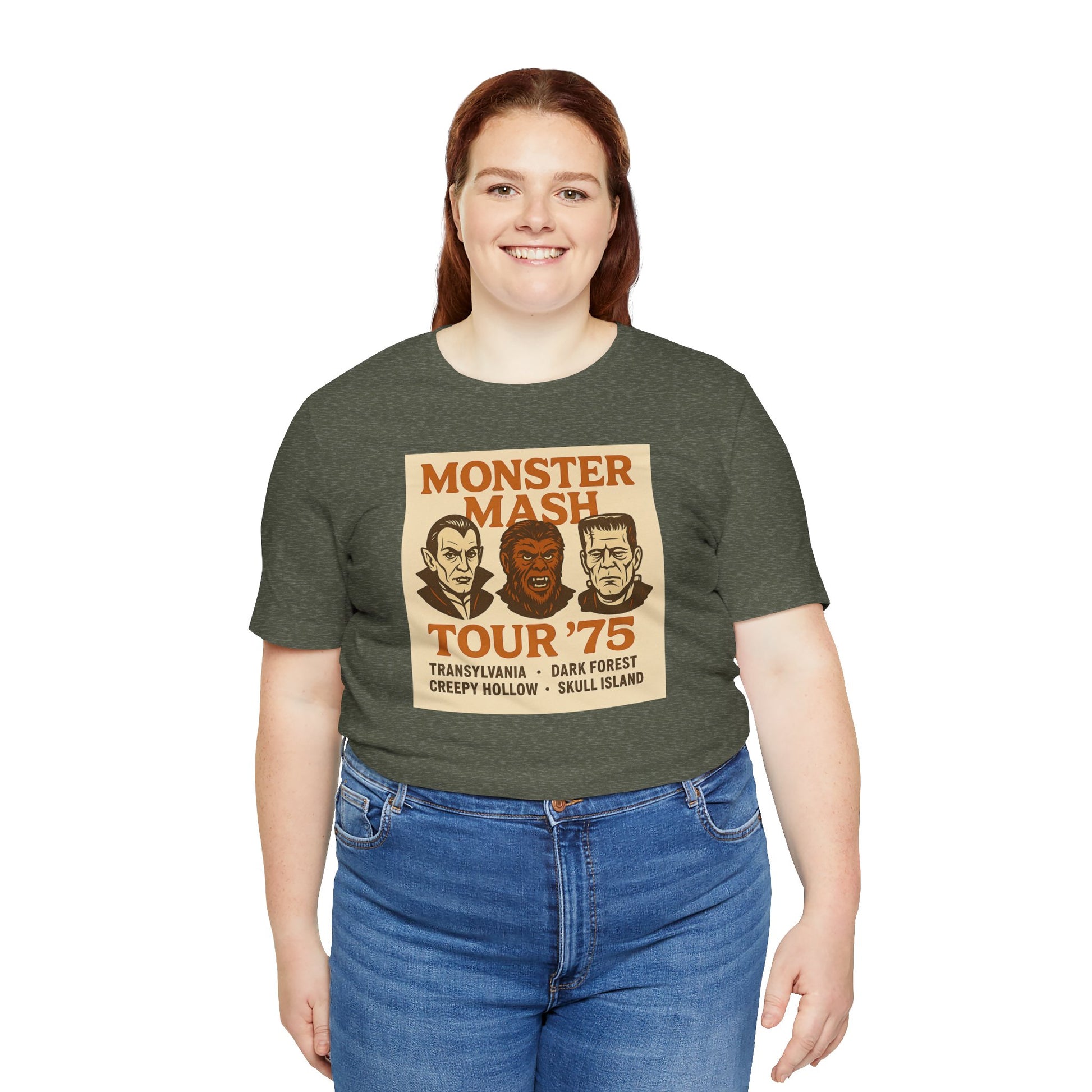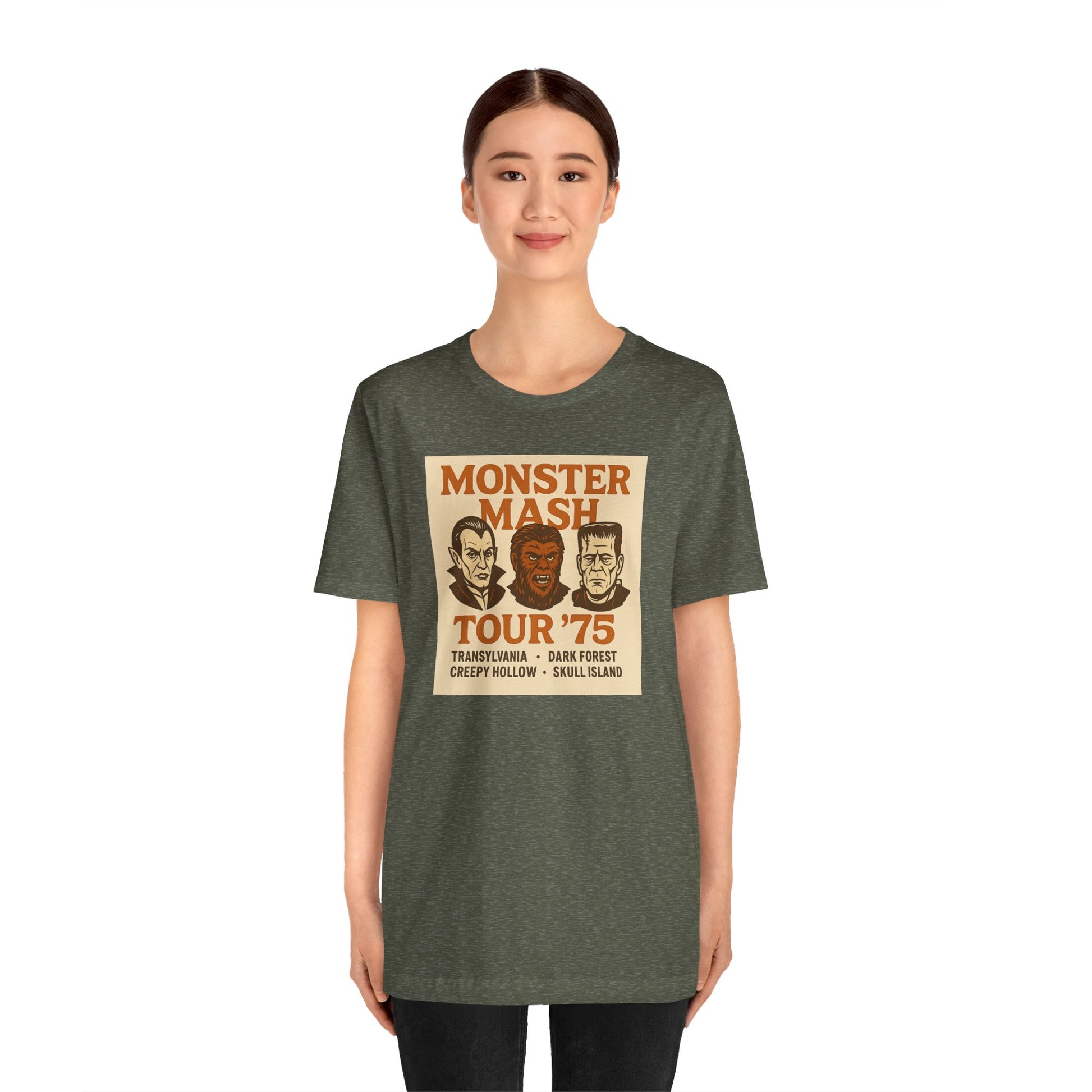 Monster Mash Tour '75 Halloween Shirt – Vintage Horror Band Tee Featuring Dracula, Wolfman, Frankenstein