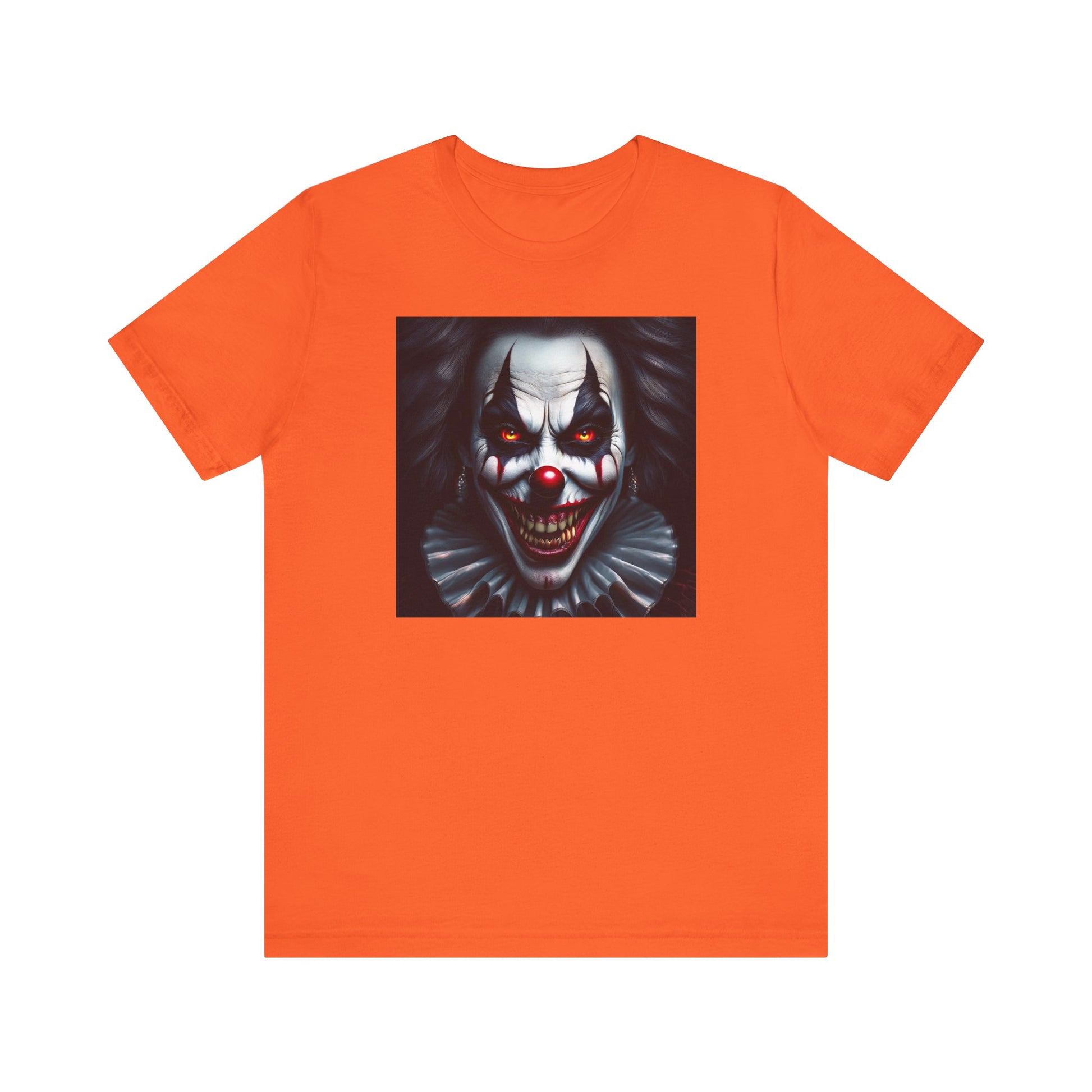 Sink your fangs into the horror of Halloween with this bone-chilling clown shirt. Featuring a horrifying clown face with glowing red-orange eyes, razor-sharp teeth, smeared face paint, and a twisted, blood-stained grin, this design is pure nightmare fuel. The sinister details and vampiric flair make this Halloween shirt perfect for horror movie fans, haunted house goers, or anyone who wants to terrify their friends at Halloween parties or trick-or-treat night.