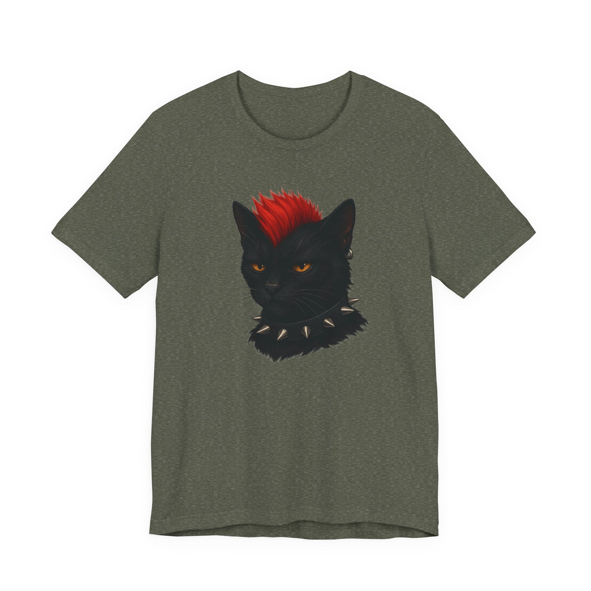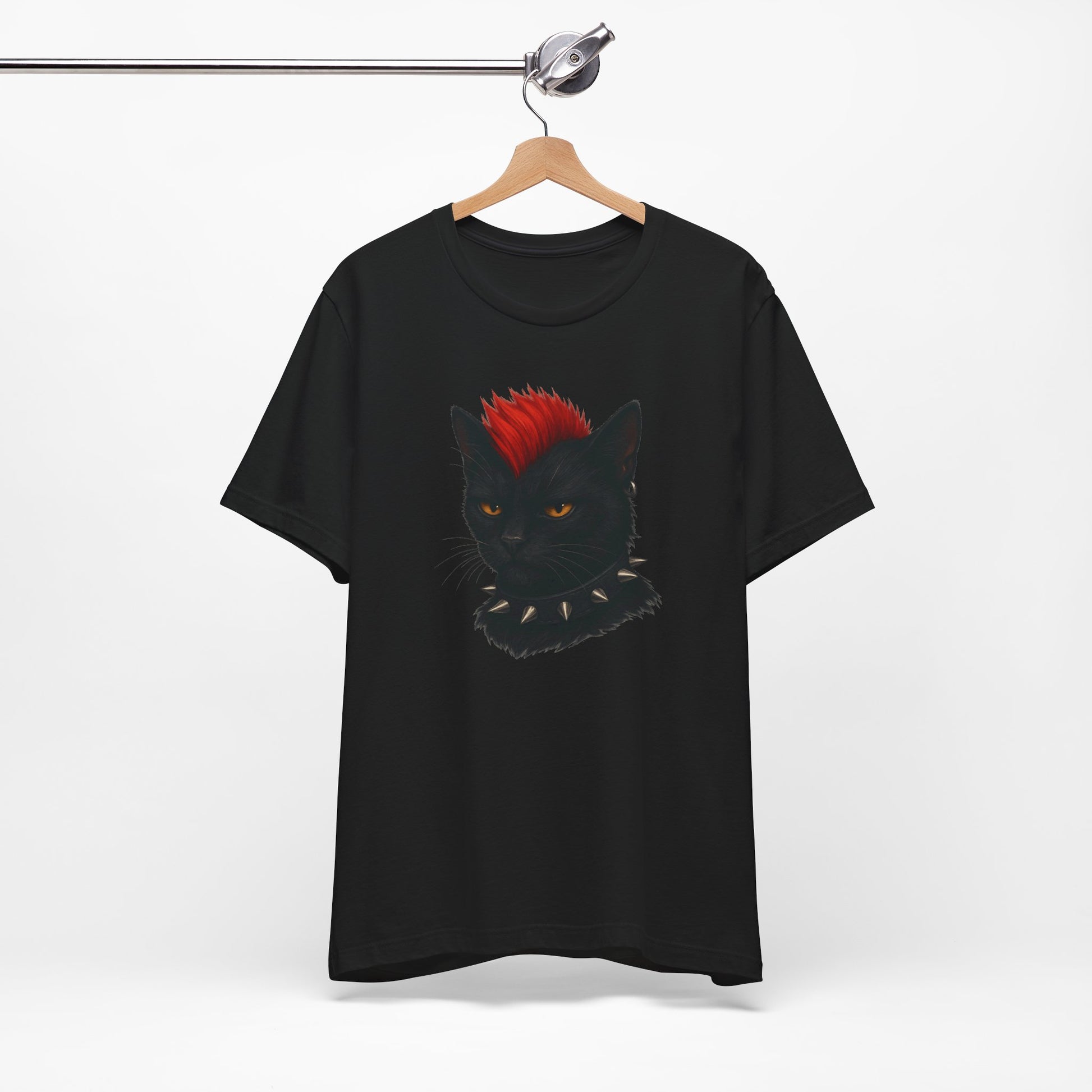 Punk Rock Black Cat Graphic Tee Dark Theme – Spiked Collar Rebel Feline Design