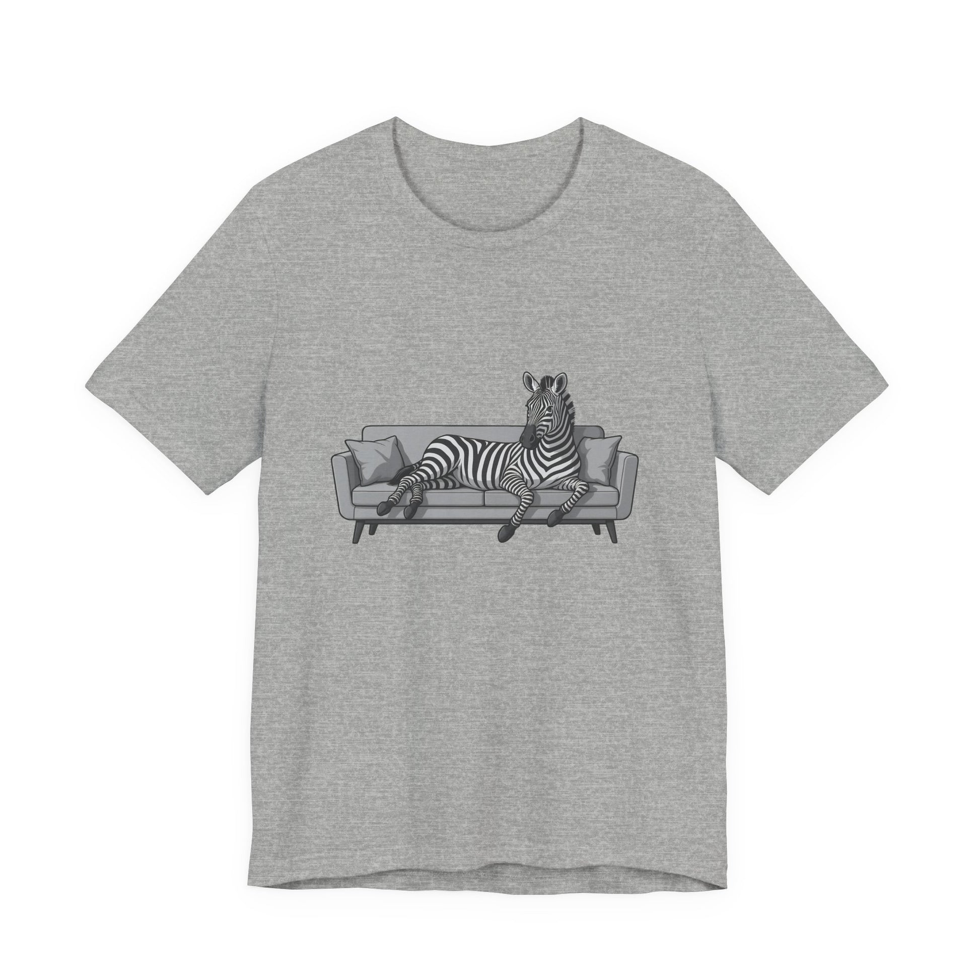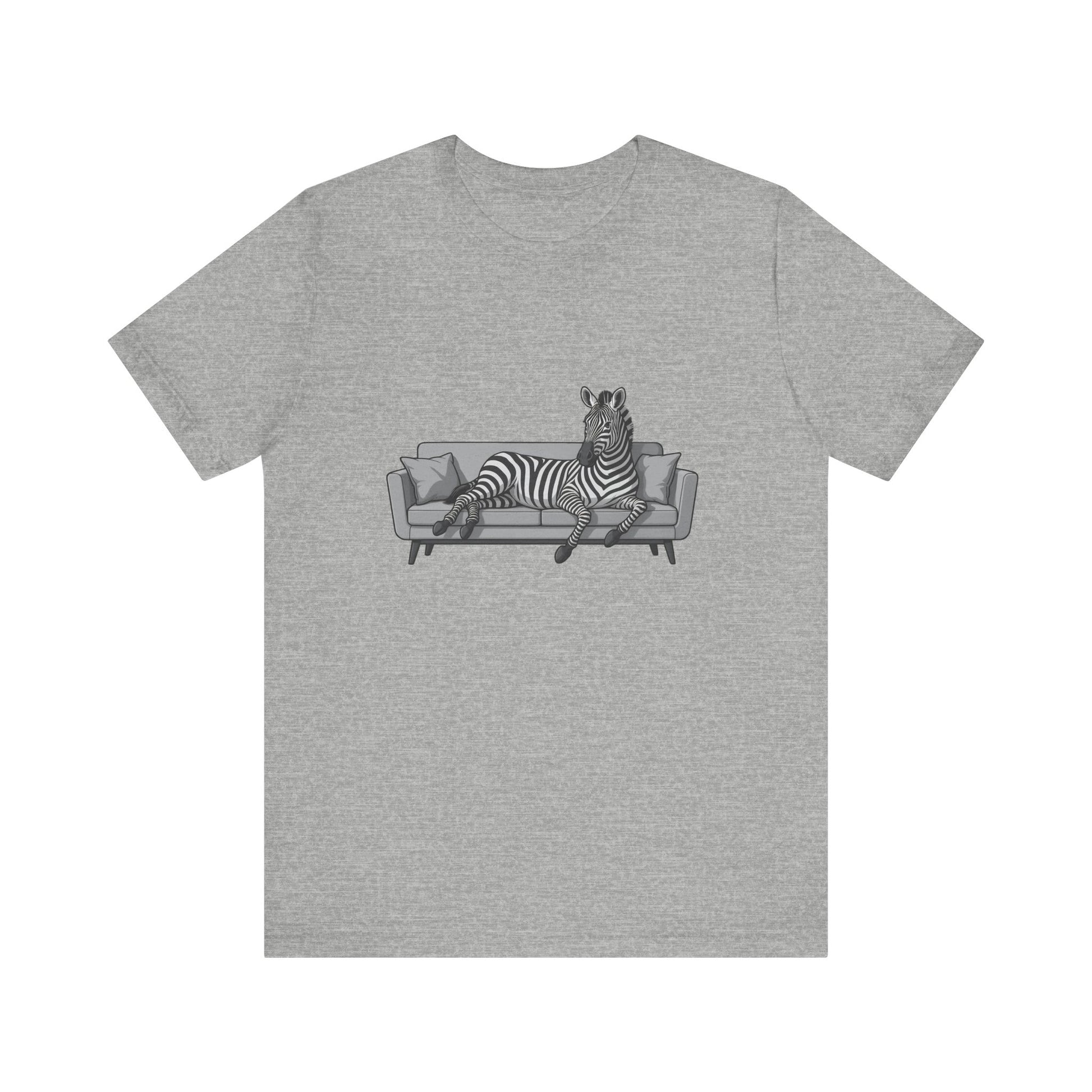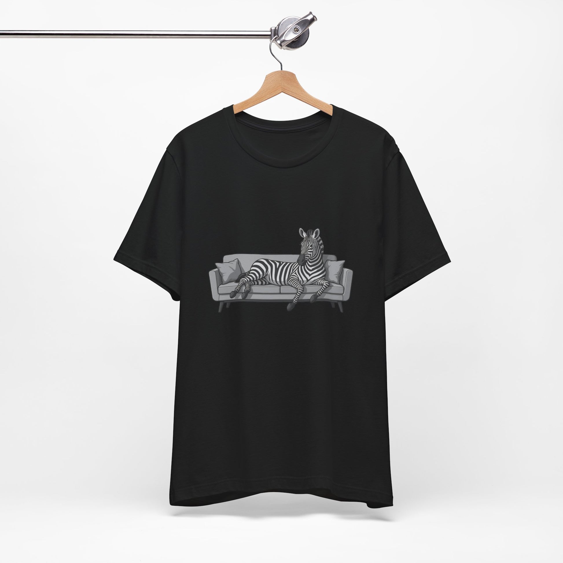 Relaxed Zebra on Couch Graphic Tee Dark Theme – Chill Animal Art with Modern Vector Design
