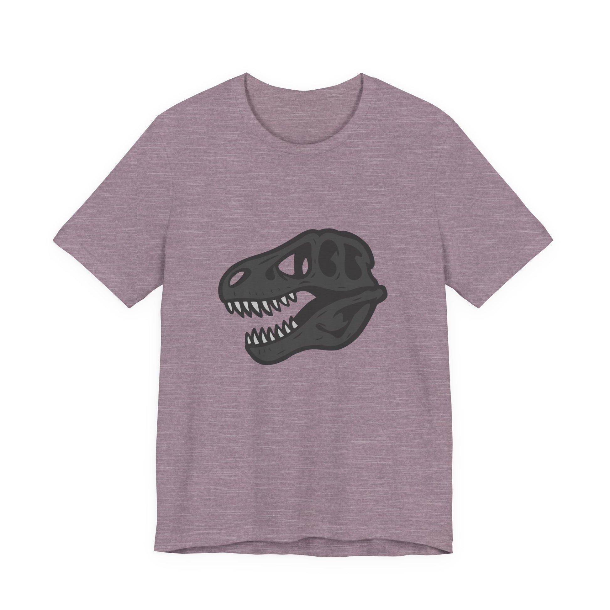 Bring extinction-era power to your look with this T-Rex skull graphic tee. Featuring a detailed grayscale dinosaur skull, this design speaks in silence—sharp teeth, hollow eyes, and ancient danger. Printed with a modern ghost effect, the image blends into the black fabric for a low-contrast, shadowed presence. It’s for those who wear history like armor.